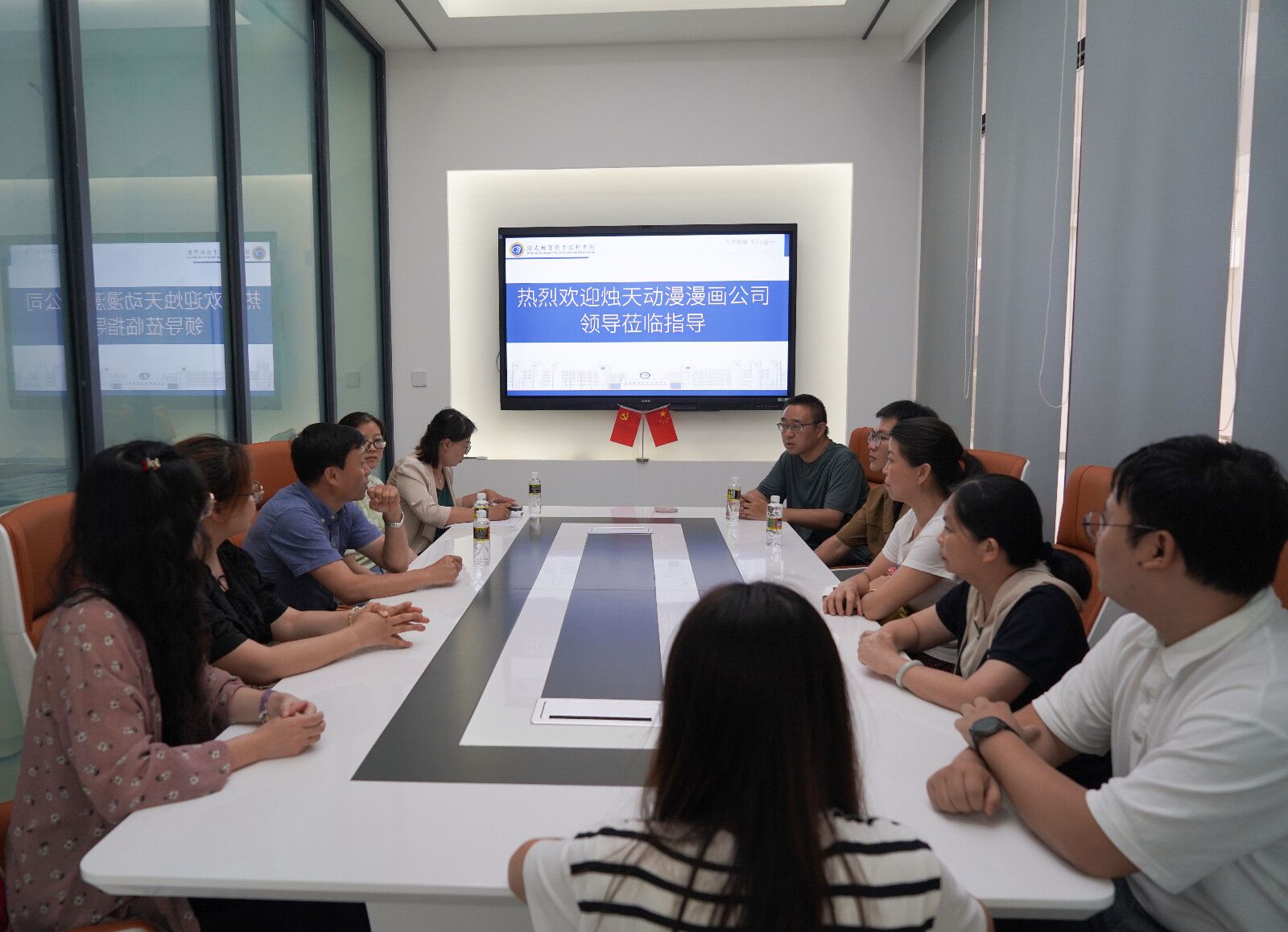 随后,康东副院长及专业负责人马清与企业代表展开深入交流。企业总经理张越介绍了公司的发展历程、业务范畴以及在动漫领域的创新成果。紧接着,双方围绕人才培养、实习实训、企业项目等关键议题展开热烈讨论。专业教师团队结合教学实践,与企业代表共同探讨如何将企业实际项目融入课程教学,让学生在学习过程中接触到行业前沿技术和真实项目案例,进而增强学生的实践能力与职业素养。
