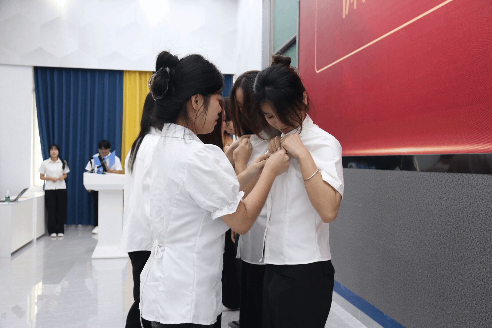 仪式在庄重的国歌奏唱中拉开帷幕,随后,蔡老师宣读新团员名单,并向他们表示热烈祝贺。接着,老团员们为新团员佩戴团徽,象征着荣誉与责任的传承。