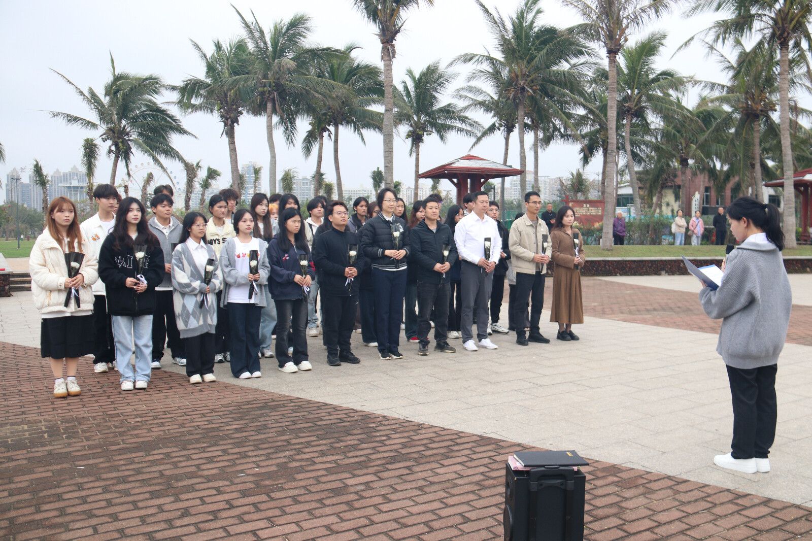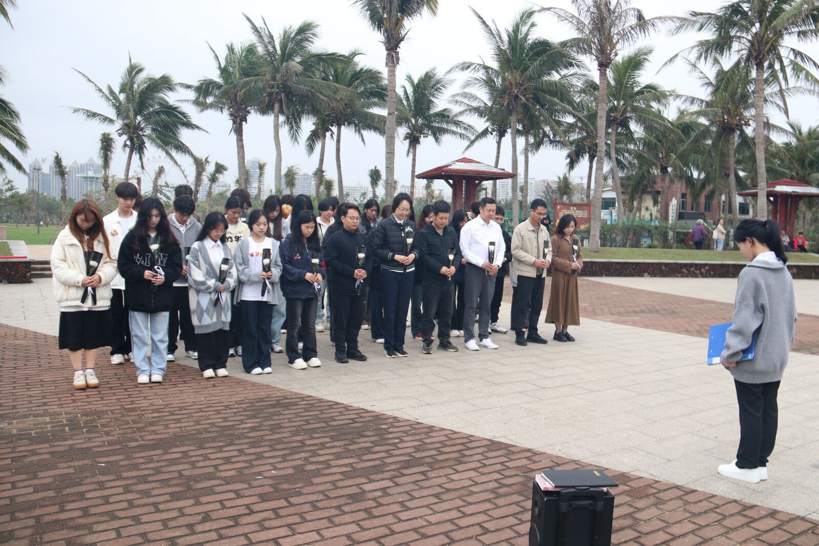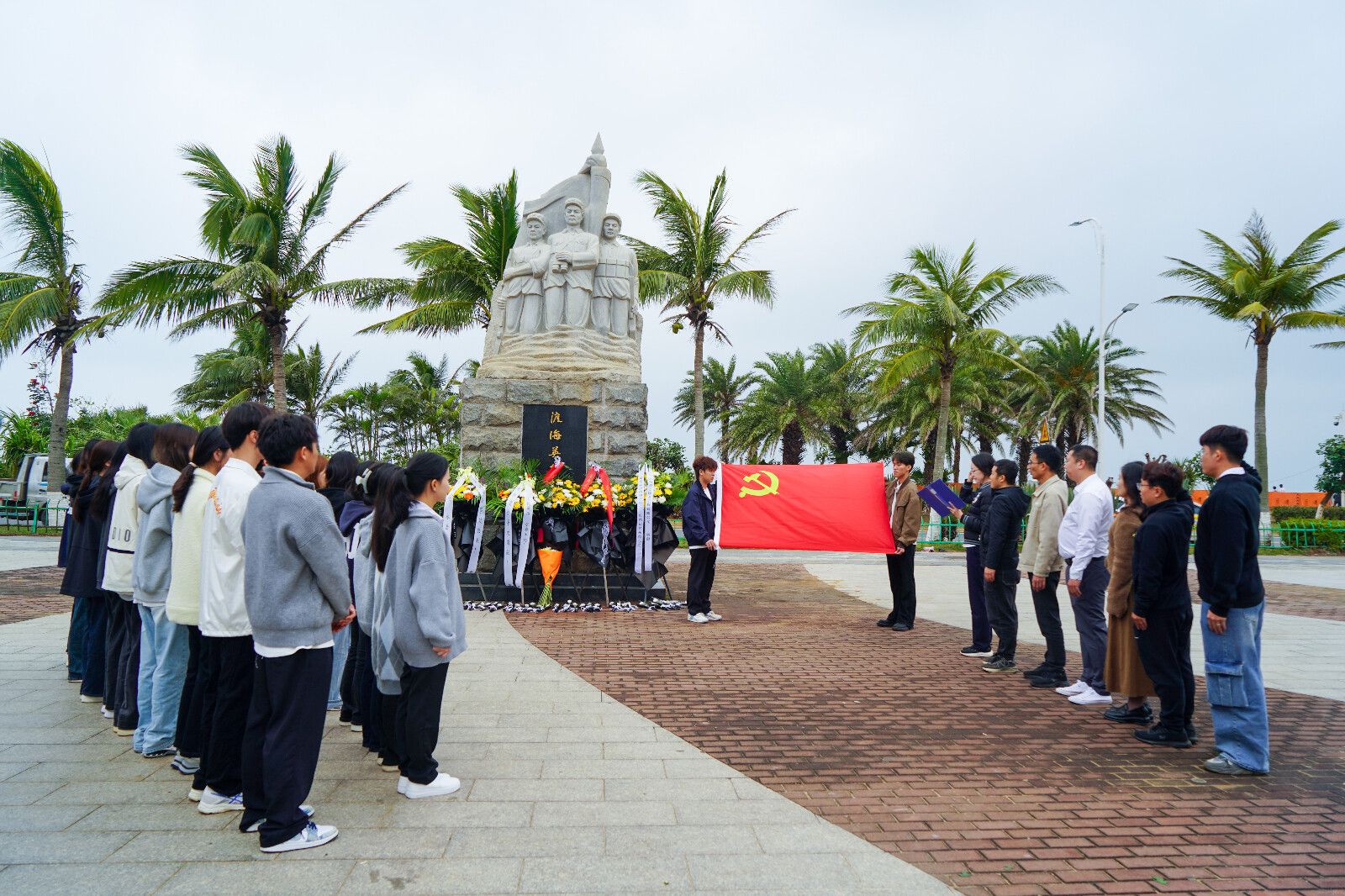 为弘扬革命精神,传承红色基因,扎实开展深入贯彻中央八项规定精神学习教育,2025年4月1日下午,best365官方网站登录入口教师党支部与学生党支部在白沙门渡海作战纪念广场联合开展了“追忆渡海英雄,赓续革命薪火”主题党日活动。本次活动由邱叶同学主持,教师党支部书记康东老师、学生党支部书记代晓明老师,教师党支部委员王天明老师、靳向峰老师、学生党支部委员蔡守正老师、符传栋老师、学生党员、入党积极分子以及团学干部共同参与。