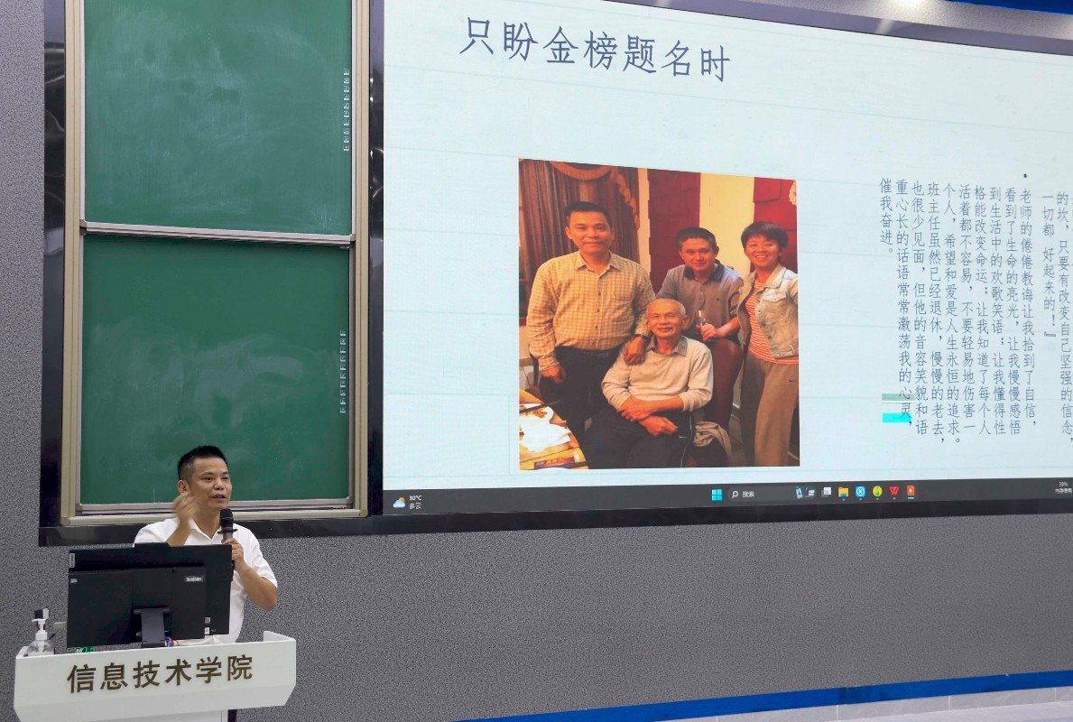 紧接着,由学院党总支书记符胜为同学们进行“加强人生修养,追求幸福之路”主题讲座。相遇即是缘分,符书记提醒大家要珍惜缘分,珍惜眼前人,并通过自身成长经历告诉同学们要懂得感恩、懂得尊重他人、讲诚信。正如符胜书记所言:“人生犹如次第花开”,自己的人生应该由自己做主,要学会感受生活中的快乐,学会克服困难。讲座伴随着书记嘹亮的歌声,同学们犹如身临其境,现场气氛十分融洽。