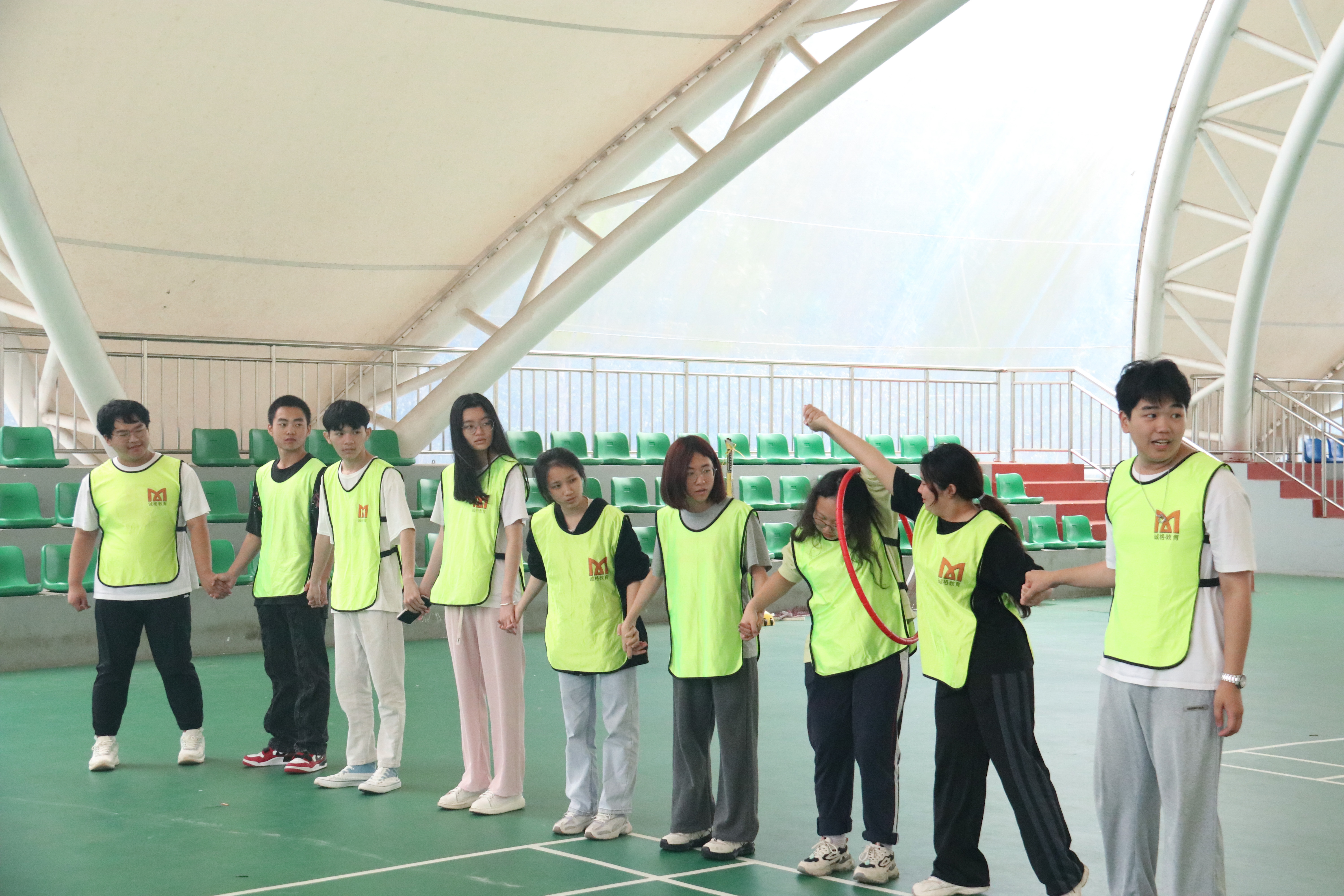 活动伊始,梁其钰副书记希望全体成员放开自我,相互了解,融入到集体中。在“大树松鼠”和“数字抱团”热身小游戏后,团学素拓正式拉开序幕,大家通过随机组队的方式被分为6个游戏小组,相互探讨,设计好了队名、队徽、队歌、队形,并展开了三项团队协作比赛,分别是速度、技巧比拼的报数、套呼啦圈、站板离地;记忆力、团队交流比拼的翻扑克牌;配合、协作比拼的南水北调,最终,“六六大顺”小队获得了“最佳团队”。活动的最后,辅导员们与团学成员们共同完成齐心协力大挑战——信任背摔,每个成员都充满活力,积极参与,营造着团结、互信、互助、友爱的氛围。
