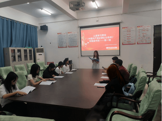 活动伊始,与会成员们进行了自主阅读,对《条例》有了初步了解。紧接着,入党积极分子张露露同学作为领读人,带领大家齐声朗读了条例第十一章,旨在通过朗读加深理解和记忆。随后,同学们纷纷发言,分享了自己对本章内容的见解,将《条例》的精神与自身生活、社会、工作等方面相结合,表达了坚持初心、牢记使命,积极向党组织靠拢的决心。