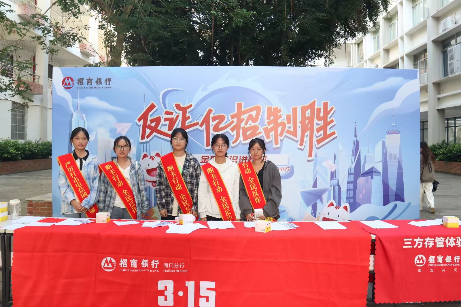 活动伊始,招商银行海口分行的工作人员结合同学们的校园生活实际,从多个维度深入剖析了常见的诈骗案例,通过细致入微的分析,使同学们深刻认识到诈骗行为的危害性和隐蔽性。工作人员详细讲解了“杀猪盘”“断卡行动”“征信修复”等金融诈骗的相关知识,并着重指出了高利贷、银行卡非法交易等危险行为,引导同学们提高警惕,增强自我保护意识。在知识讲解环节之后,同学们有序前往楼下参与了一系列精心设计的游戏类活动,这些活动寓教于乐,不仅让同学们在轻松愉快的氛围中学习到了更多的金融知识,还进一步提升了他们的反诈实战能力。