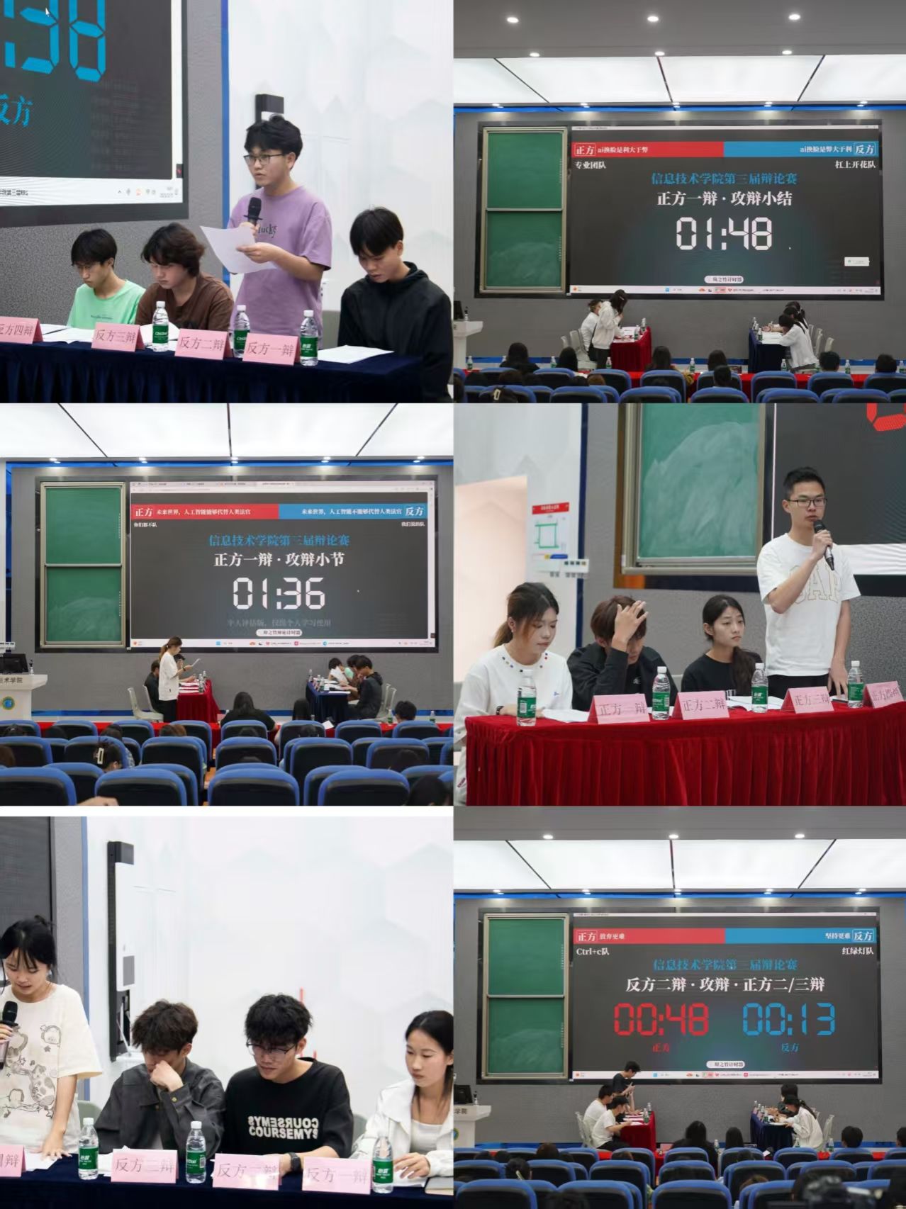 此次比赛共有六组选手进行三场对决,围绕“AI换脸利大于弊/AI换脸弊大于利”“放弃更难/坚持更难”“未来世界,人工智能能够/不能够代替人类法官”三大辩题展开激烈辩论。赛场上,各参赛队伍展现出扎实的学术素养和出色的辩论技巧,正反双方辩手通过立论陈词、攻辩阶段、自由辩论等环节,层层深入剖析辩题内涵,思维火花不断迸发,将比赛推向高潮。