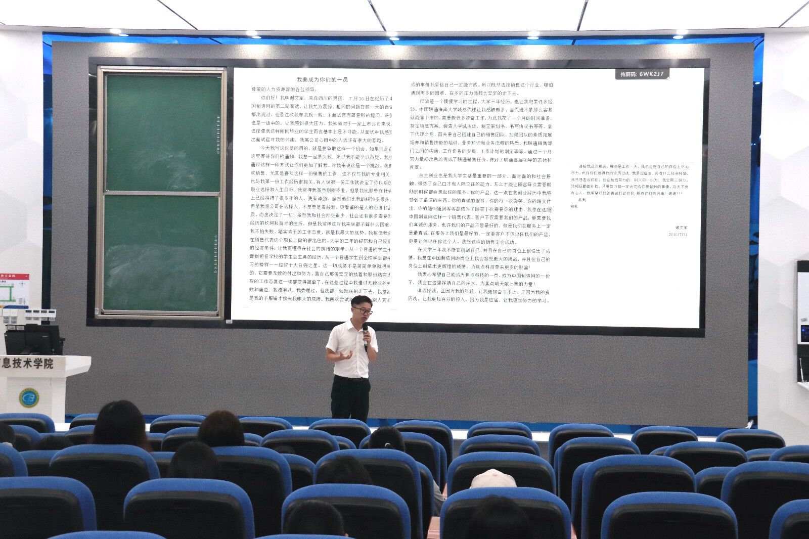 谢艾军首先回顾了在母校的三年时光,从远赴海口求学时的懵懂少年,到通过竞选学生会、参与海南骨干大学生培训、担任计算机协会骨干等经历实现蜕变,他特别提及带领团队完成联通校园代理业务、斩获30余项荣誉的奋斗历程,强调“大学是突破舒适圈的最佳舞台”。