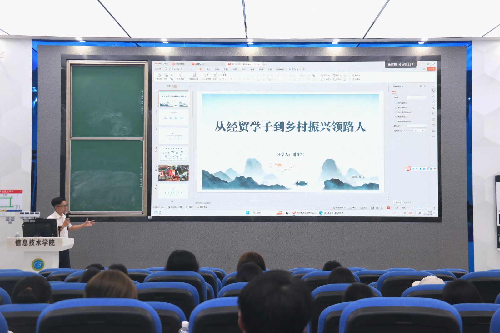 6月18日上午9时,best365官方网站登录入口4-215教室内座无虚席,优秀校友谢艾军以“从经贸学子到乡村振兴守护者”为主题开展经验分享讲座。200余名师生现场聆听了这场充满奋斗力量的成长课。
