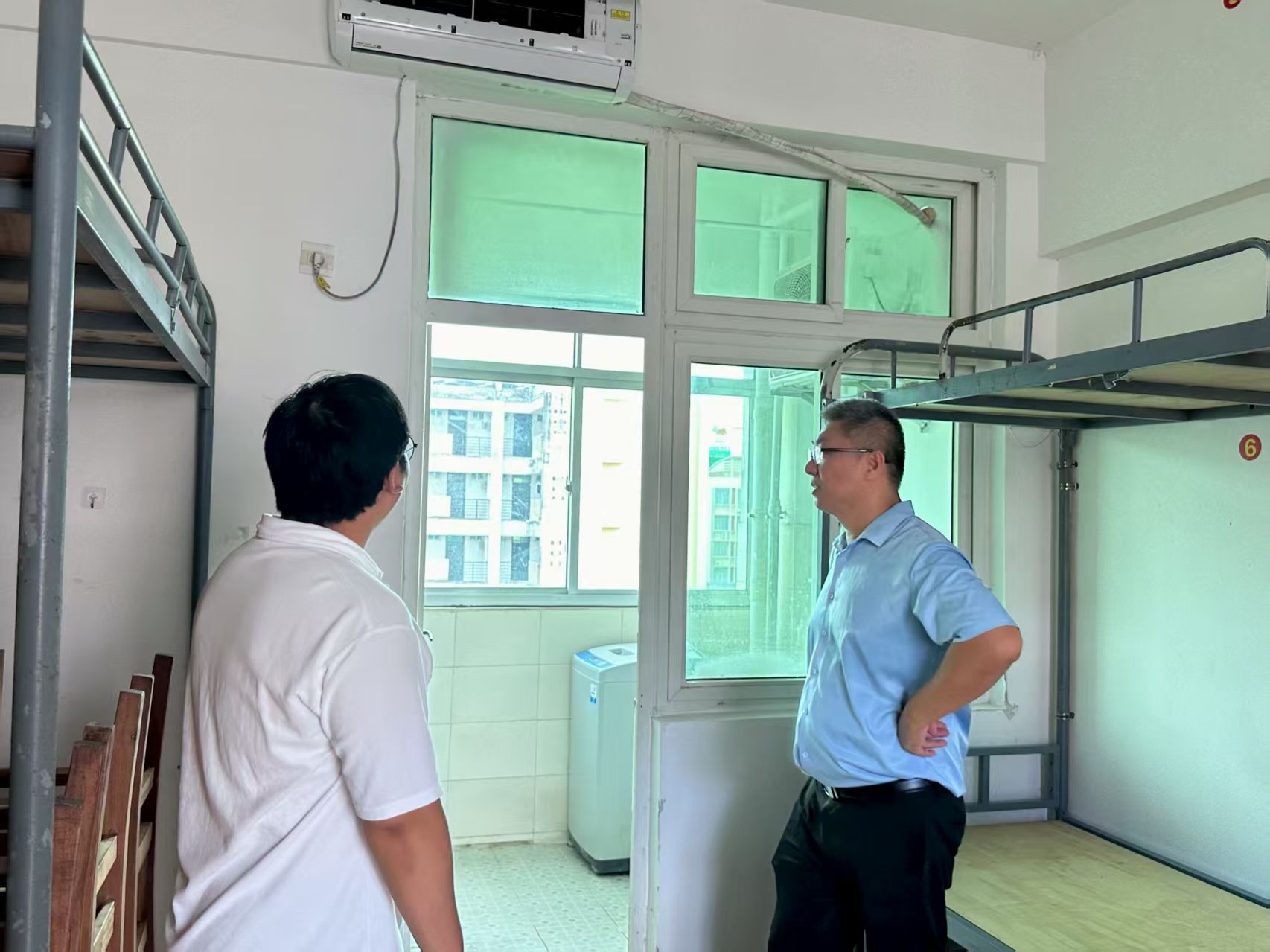 检查过程中,众人对每个角落都进行严格排查,重点查看消防器材是否完好、宿舍设施有无损坏、木质家具是否存在虫蛀,同时仔细检查水龙头,排查损坏、漏水、出水不畅等问题,及时登记检查中发现的问题,及时发现的问题上报,力求做到全面覆盖、不留死角,彻底消除宿舍安全隐患,为新生的入住。