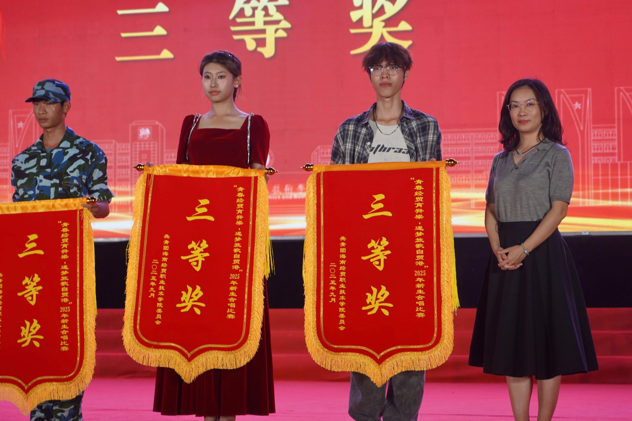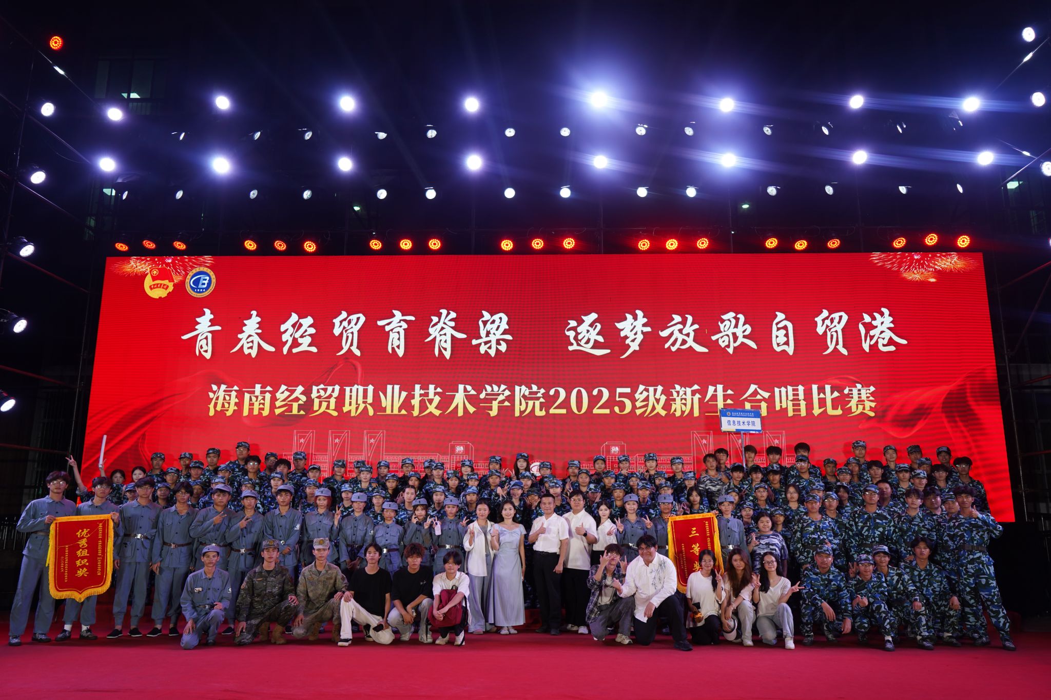 9月29日晚,海南经贸职业技术学院新生军训红歌汇演在经贸广场启幕,best365官方网站登录入口新生以一曲《在太行山上》惊艳全场,融合精巧舞蹈与时空对话的创意演绎,最终斩获合唱比赛三等奖和优秀组织奖,用青春之声传承红色记忆。