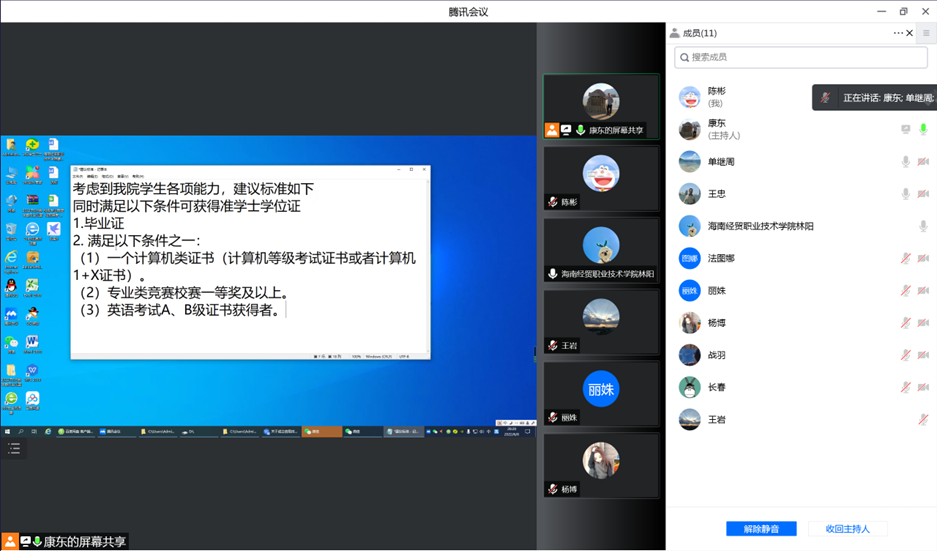为明确我院毕业生获得准学士学位证条件,6月8日晚上,best365官方网站登录入口通过在线视频召开本年度第1次教学指导委员会会议,会议由康东副院长主持,王忠院长、单继周副院长及学院教学指导委员会成员参加了会议。