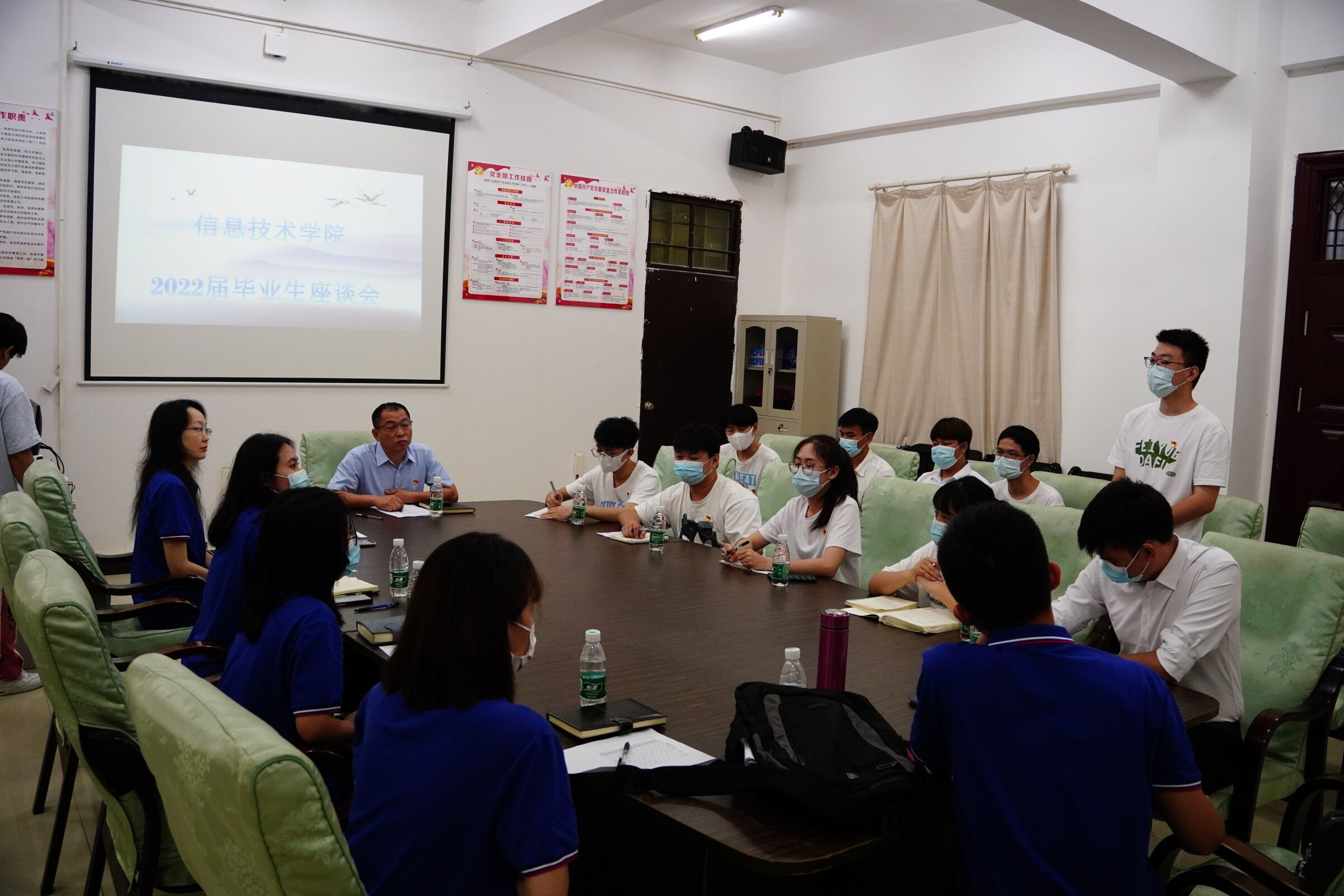 (青年媒体中心 王菲)讯。2022年6月14日下午,best365官方网站登录入口召开2022届毕业生座谈会。党总支书记孙金,学工办全体成员及优秀毕业生代表出席。孙金主持会议。