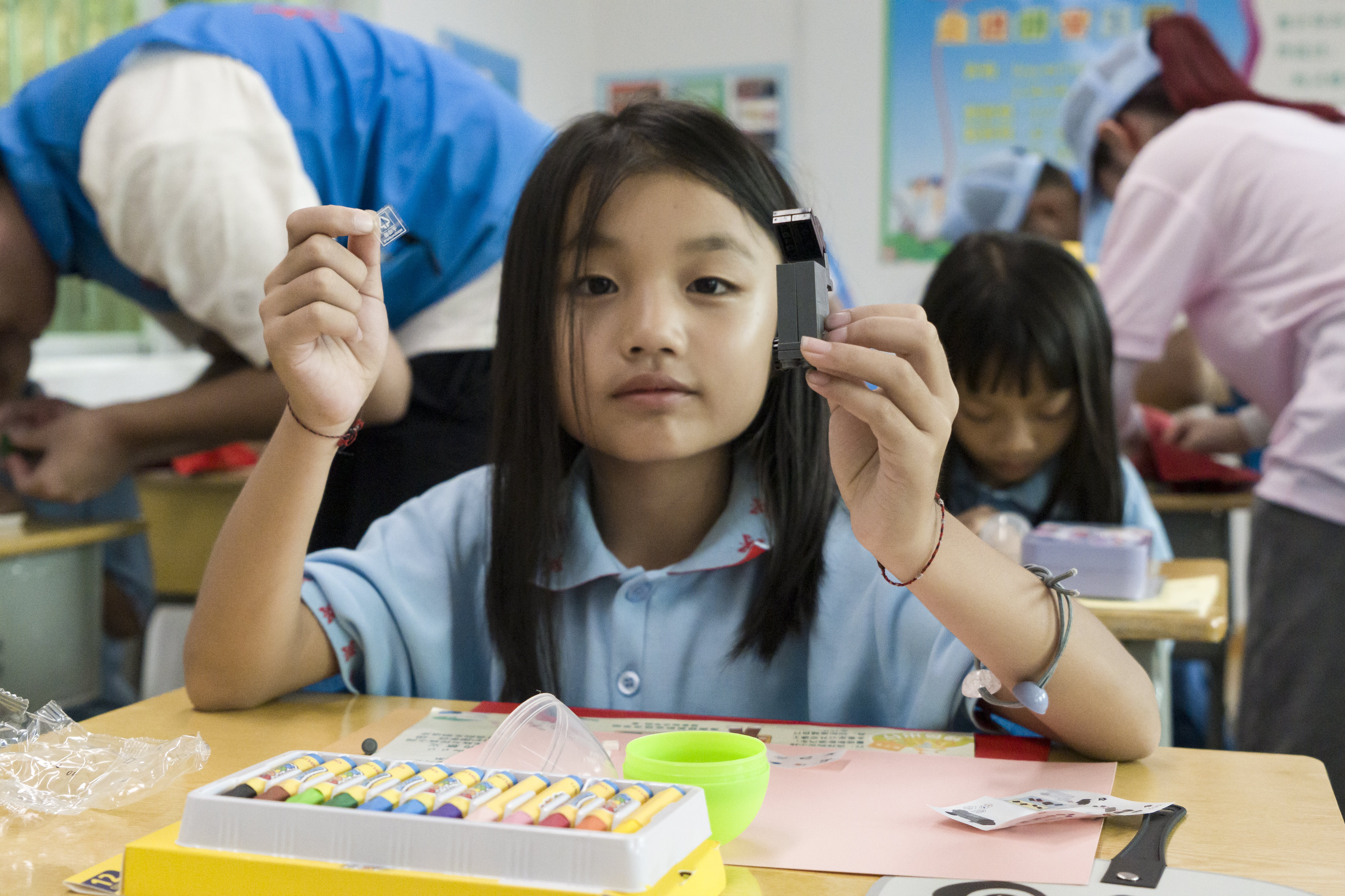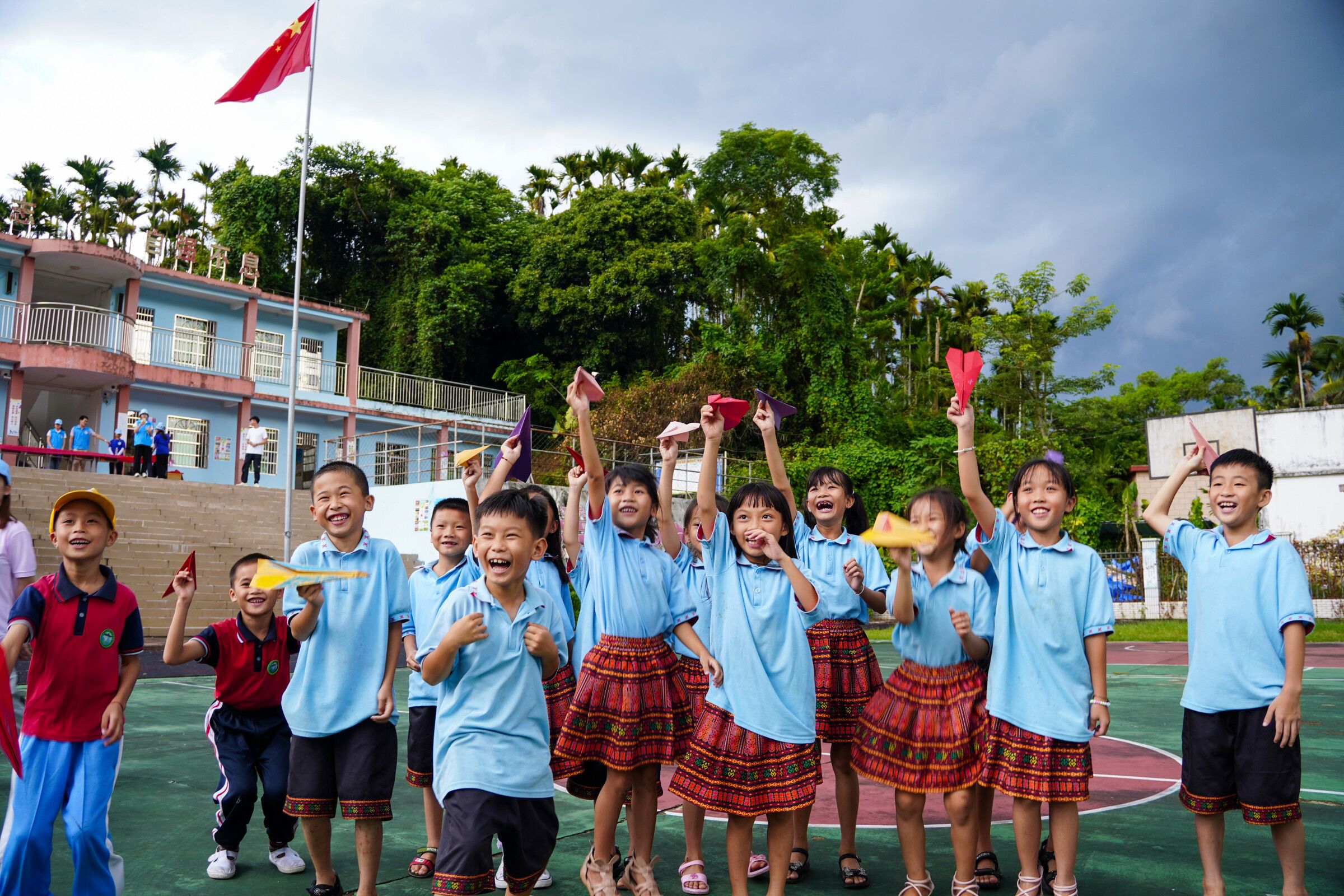 紧接着支教服务团的同学还给孩子们发了卡纸,让孩子们在上面写上自己的梦想折成纸飞机,并将折好的纸飞机扬出去,放飞梦想。最后,为了帮助孩子们更好的学习和了解垃圾分类,支教服务团为小学生们提供了垃圾桶实物模型,由孩子们亲手搭建属于自己的模型,寓教于乐,更好的强化了孩子们环境保护科学垃圾分类的相关知识。