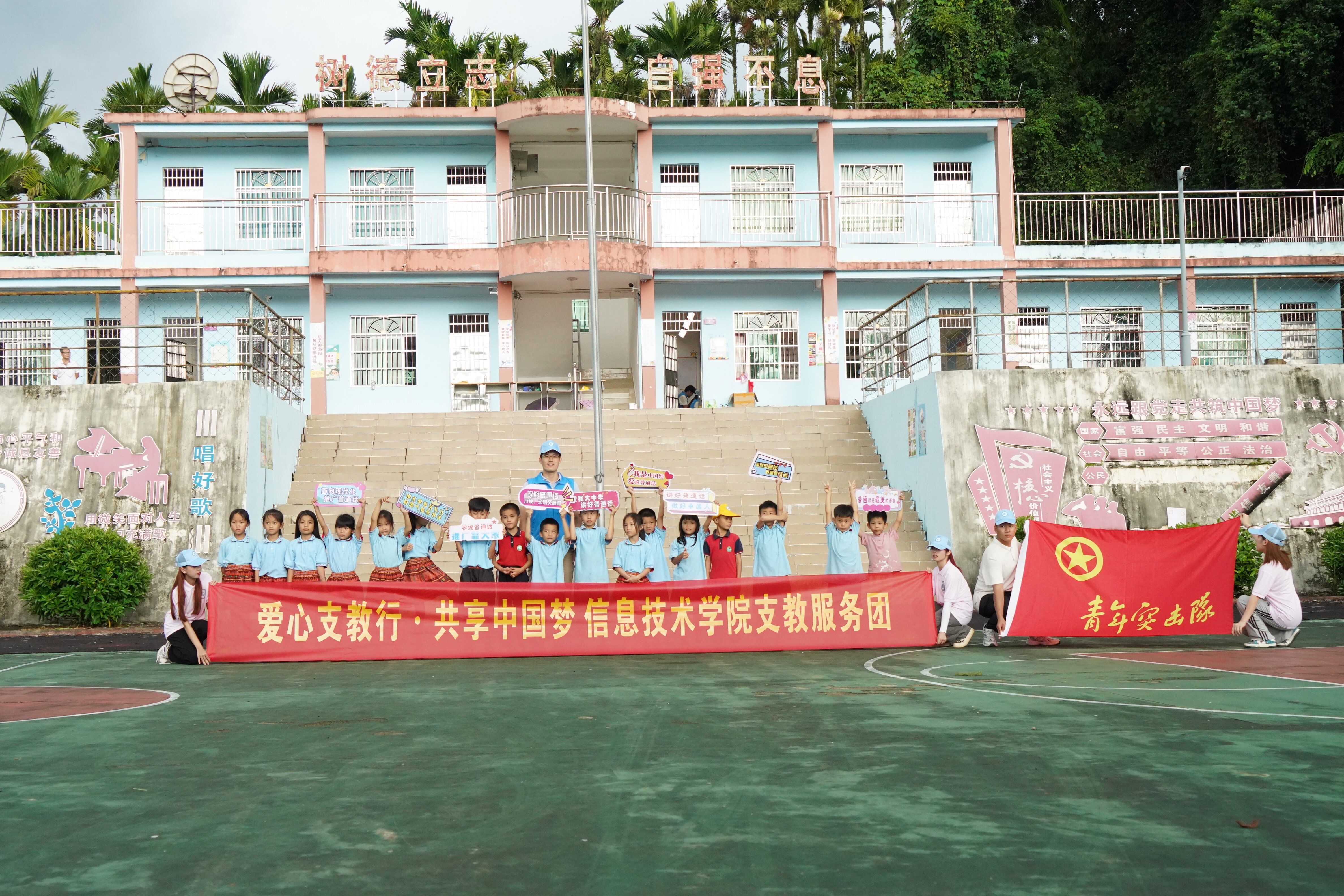 喜迎二十大,永远跟党走,奋进新征程。为积极响应《关于开展2022年全国大中专学生志愿者暑期文化科技卫生“三下乡”社会实践活动的通知》文件。2022年6月30日,海南经贸职业技术学院best365官方网站登录入口支教服务团在唐图老师和王智娴老师的带领下,前往五指山市南圣中心学校南圣教学点开展暑期社会实践活动。