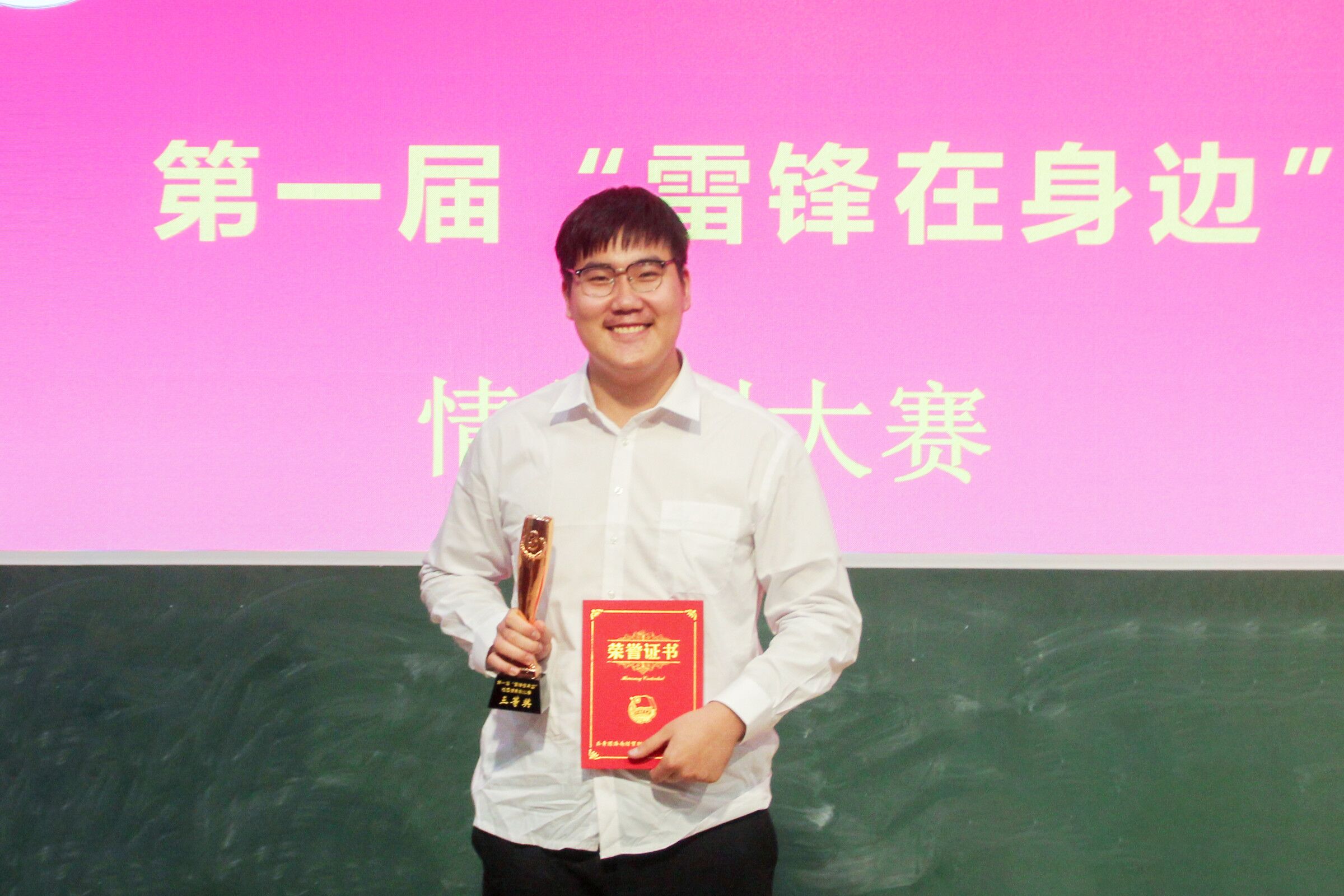 在本次大赛中,我院学子自编、自导、自演的情景剧荣获三等奖。该情景剧以“雷锋伴我行,将爱续传承”为主题,以助人为乐的班长为主线。剧中,同学们积极参加义务劳动,帮助校园环卫打扫校园。通过情景表演,再现了无私奉献的雷锋精神,充分展示了我院学子胸怀大爱、坚定信念、锐意进取的精神风貌。