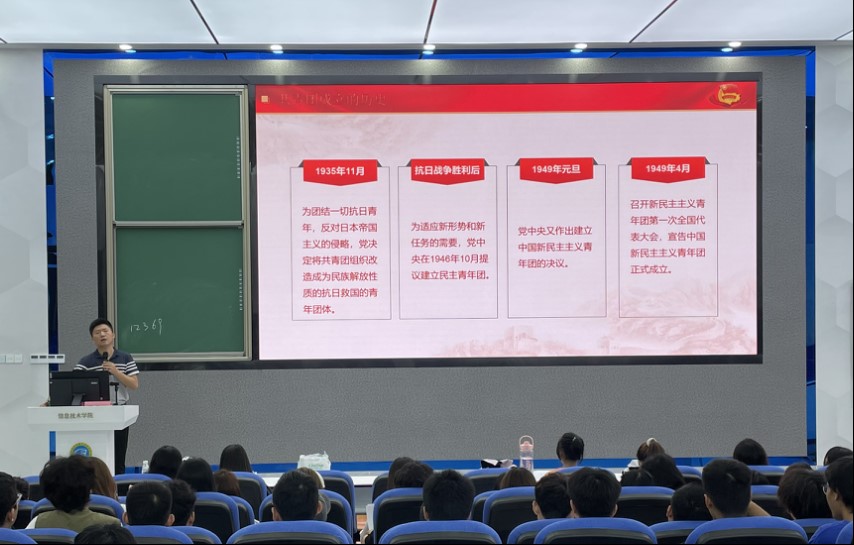 中国共青团成立100周年是历史性的一刻,梁老师带领大家回顾了共青团成立的历史,并让大家领悟体会到习近平总书记对青年的谆谆教导、殷殷嘱托,让信院学子感触良深,大家结合自身岗位特点和自身经历踊跃分享了自己的所思所想,展现了新时代青年朝气蓬勃,奋发有为的精神风貌。
