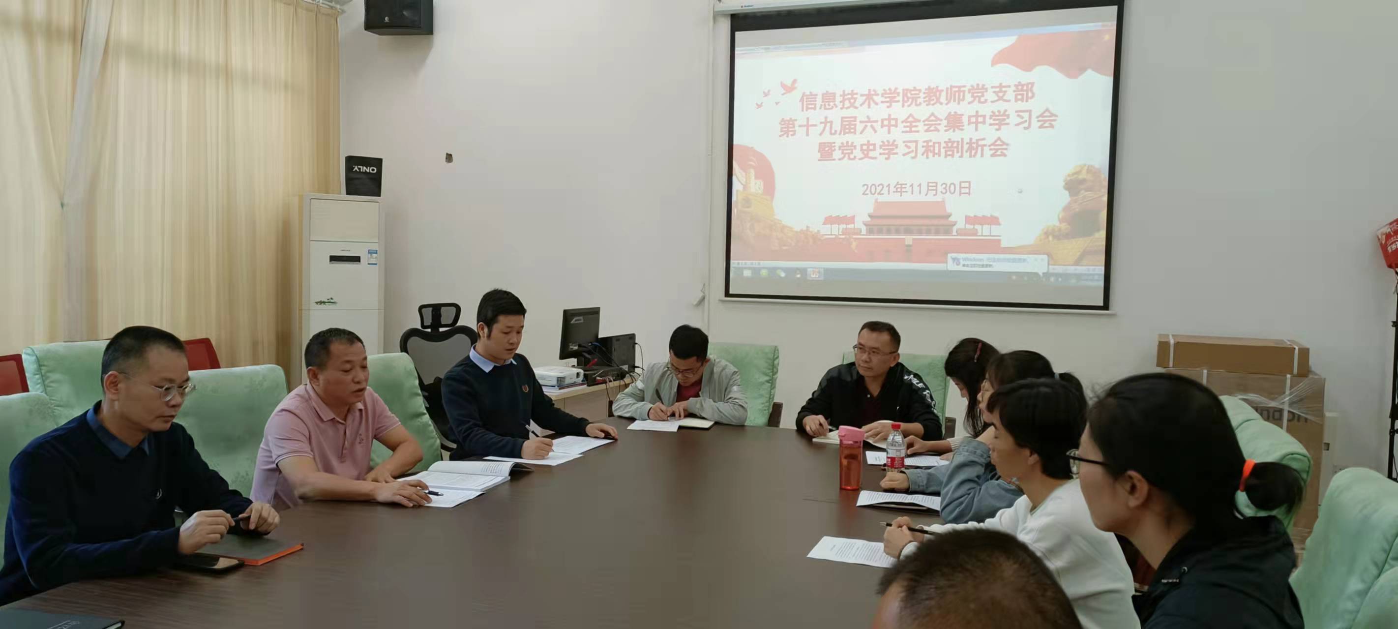 11月30日下午,best365官方网站登录入口教师党支部在4-213会议室召开党的十九届六中全会集中学习会暨党史学习和剖析会。会议由我院书记孙金主持,院长王忠、副院长单继周、副院长康东及支部其他教师党员参加了本次学习会。