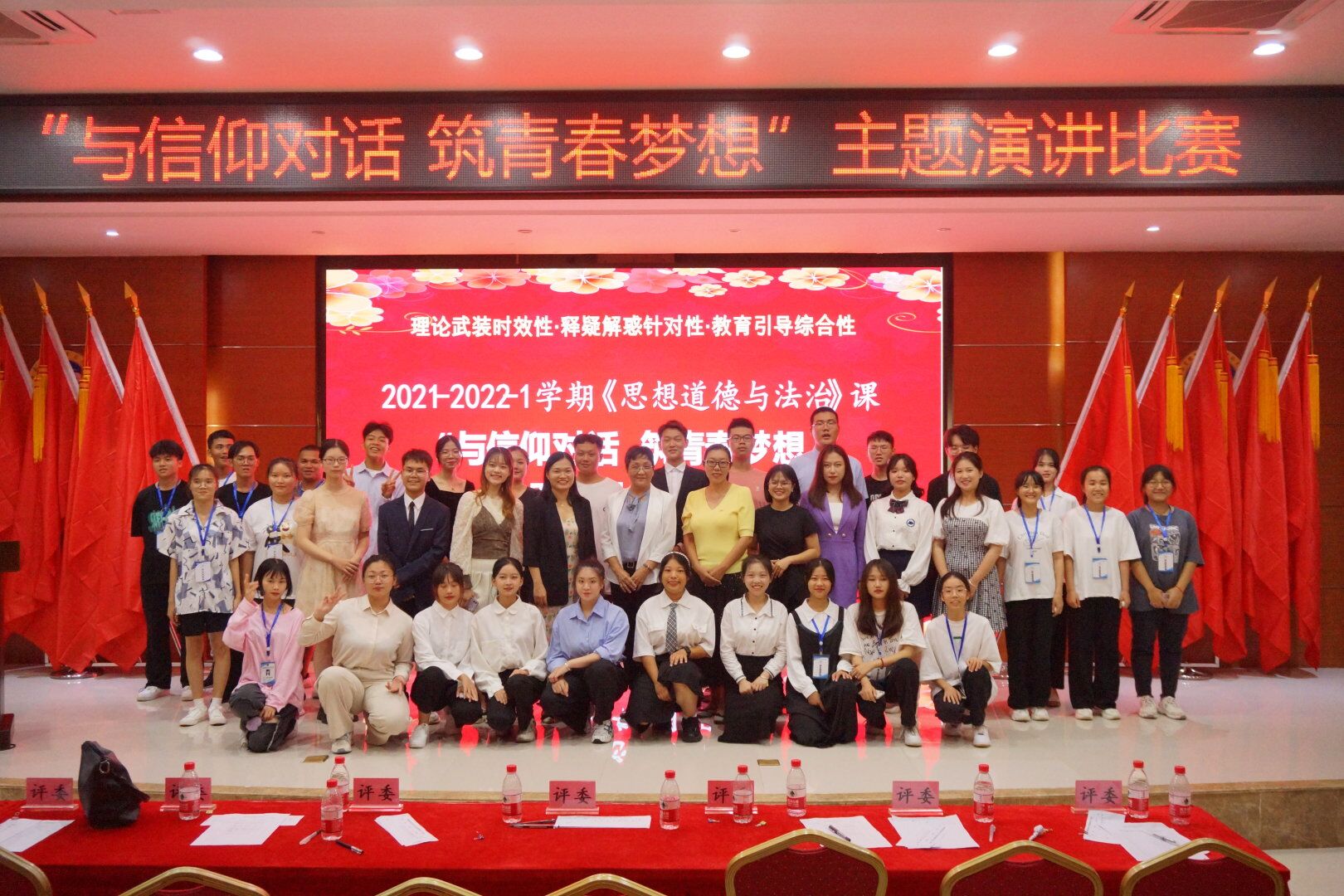 2021年11月2日(青年媒体中心 吴振慧)讯,为庆祝中国共产党成立100周年,发扬用信仰成就梦想的理念,海南经贸职业技术学院于下午3:00在学术报告厅举行“与信仰对话,筑青春梦想”主题演讲比赛。此次演讲结合本学期思想道德与法治教学课程改革以及百年党史教育主题活动要求展开。