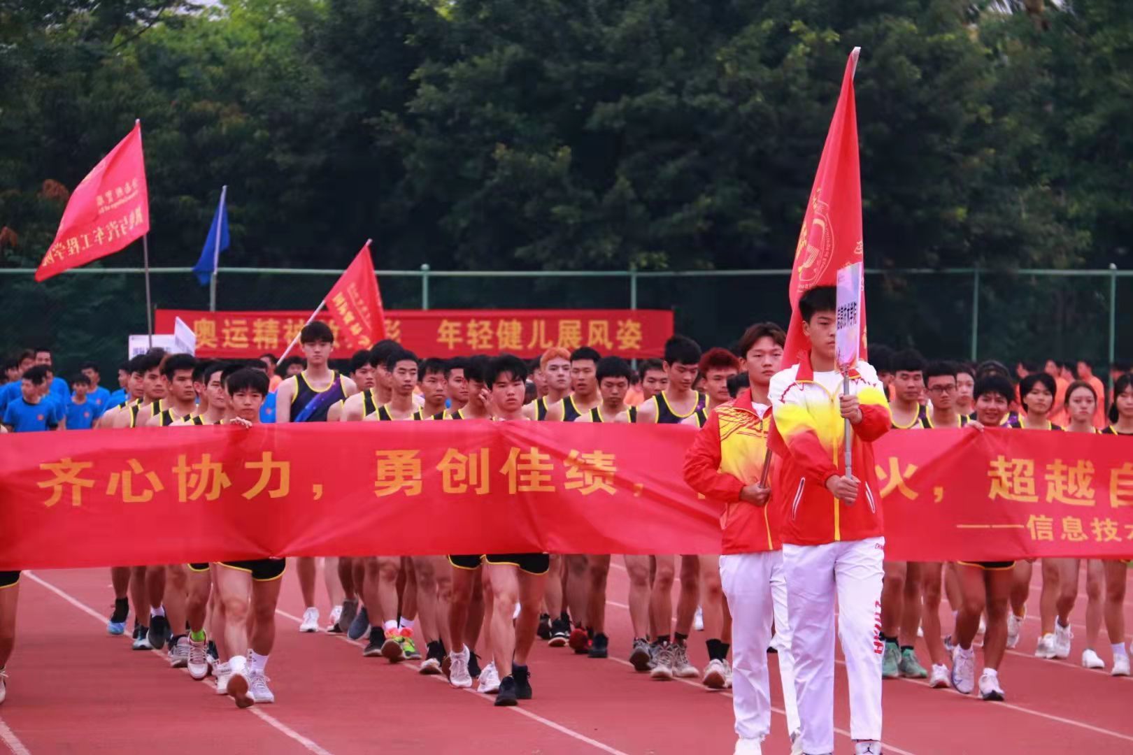 运动健儿们迎着晨曦,踏着坚实的步伐信心满满的走向赛场。赛场上信院的教师和学子在个人比赛时个个顽强拼搏,趣味接力团体赛时齐心协力,为自己也为信院奋勇争先,充分展示了我院进取向上的风貌。场下观看的信息学子即使不上场,但是依旧热血热情不减,随着一阵阵鼓声伴着欢呼声和呐喊声,为此次校运动会平添了几分青春活力的色彩。