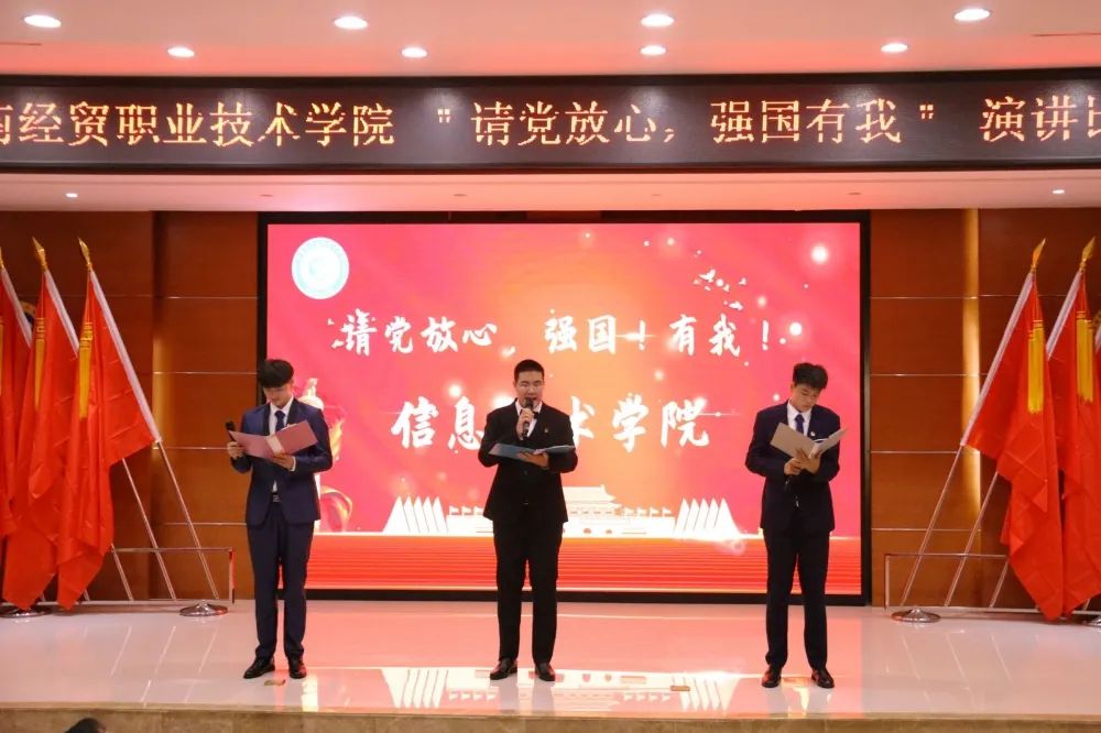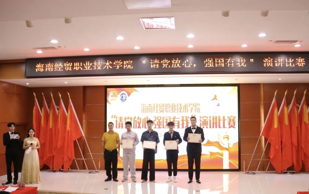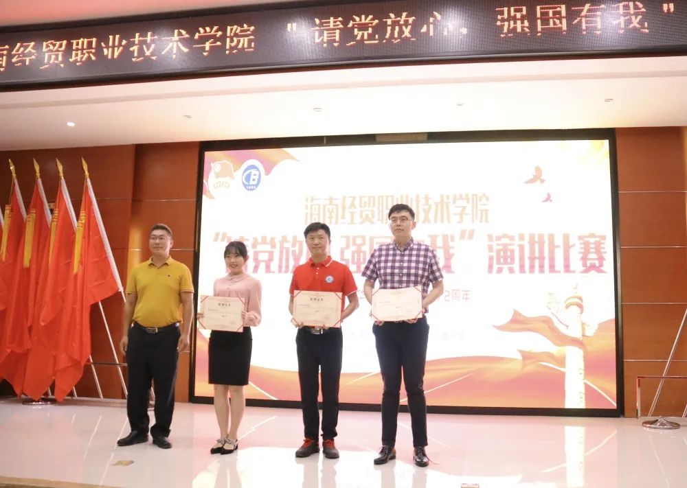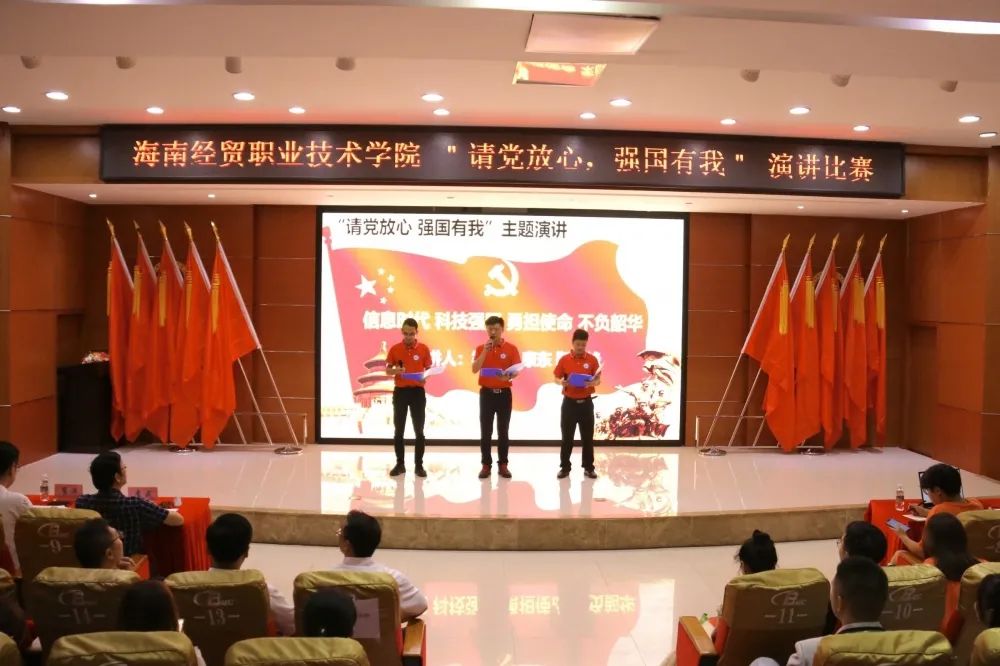 2021年9月28日(青年媒体中心 王菲)讯。为庆祝中国共产党百年华诞,激发同学们的爱国热情,海南经贸职业技术学院于2021年9月28日晚上7:00在学术报告厅举办“请党放心,强国有我”演讲比赛。