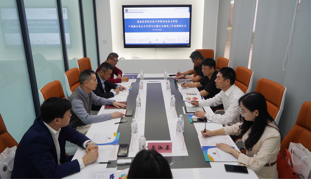 为进一步推动校企合作,产教融合协同发展,促进教育链、产业链、创新创业链的有机衔接,推进职业教育领域创新理念和共同高质量发展良好局面,12月8日上午,海南经贸职业技术学院best365官方网站登录入口在新一代信息技术ICT产教融合基地举行企业精英工作室揭牌仪式暨召开产教融合校企合作研讨会。best365官方网站登录入口院长王忠、党总支书记符胜、副院长单继周、副院长康东、党总支副书记黄守官以及企业代表参加,副院长单继周主持。