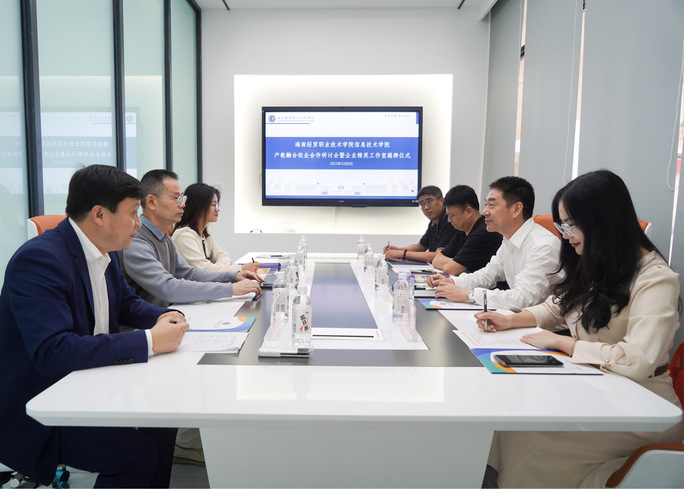 研讨会结束后,大家参观了新一代信息技术ICT产教融合基地,共同分享了产教融合的未来愿景。接下来,双方将以共育人才为根本,共同在产教融合与企业精英工作室建设、实习就业等方面开展全方位的深入合作,将进一步促进产业与教育的深度融合,为海南自贸港建设贡献力量。