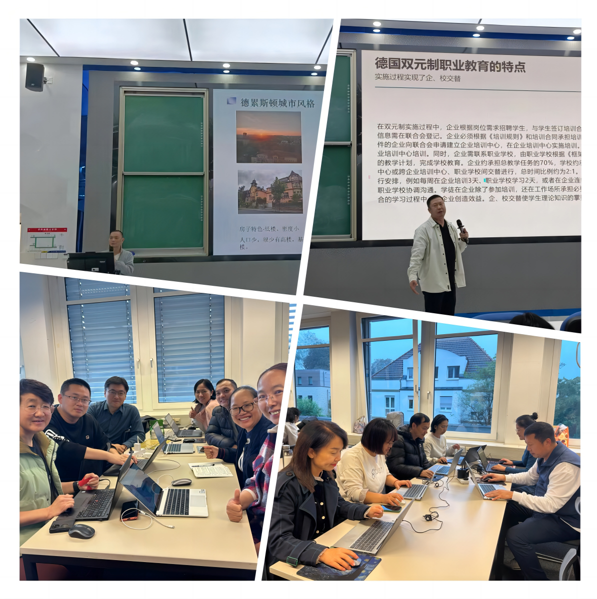 通过报告和经验交流,全体教师深入了解了德国现代教育体系、双元制职业教育体系的架构,以及德国政府、企业、职业院校、培训机构和学徒等多方在双元制教育中的职责和义务。这进一步加深了全体教师对现代学徒制的理解,对今后的人才培养模式创新和毕业生高质量就业具有积极的指导意义。