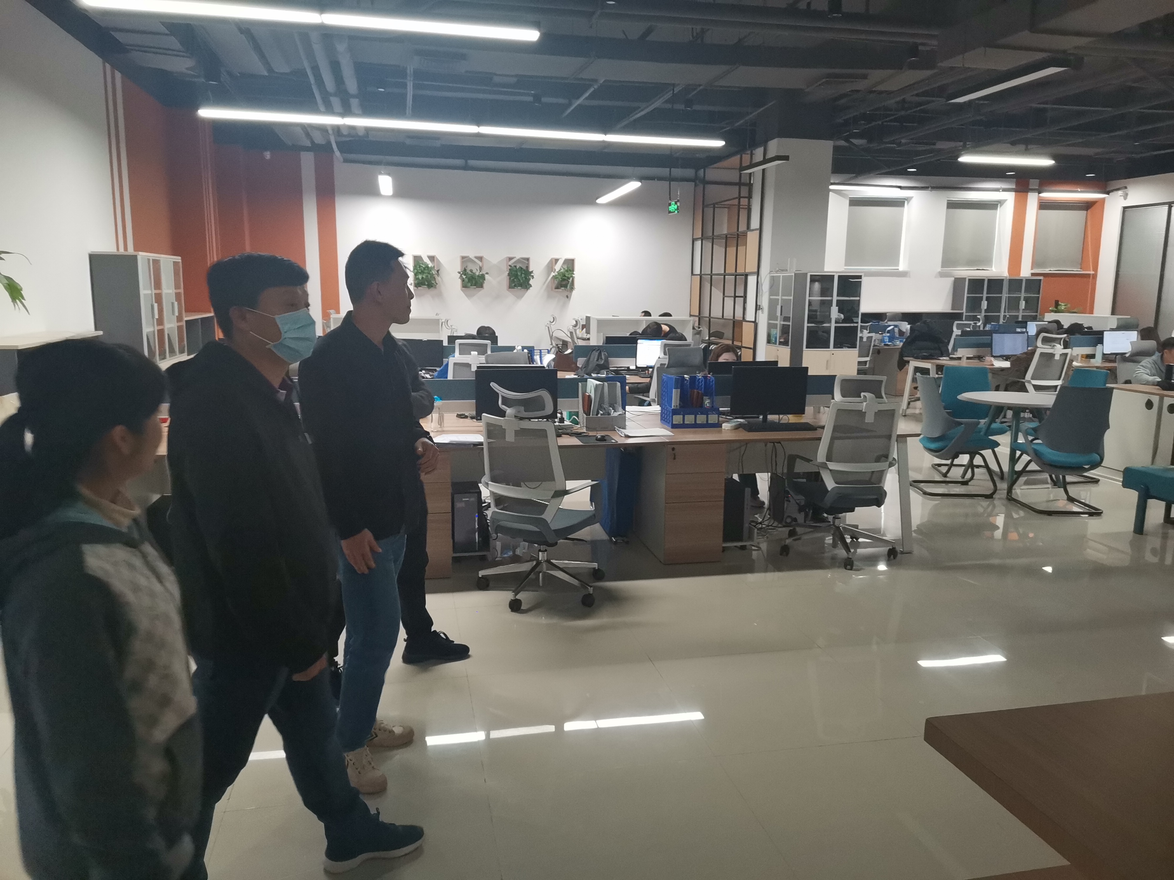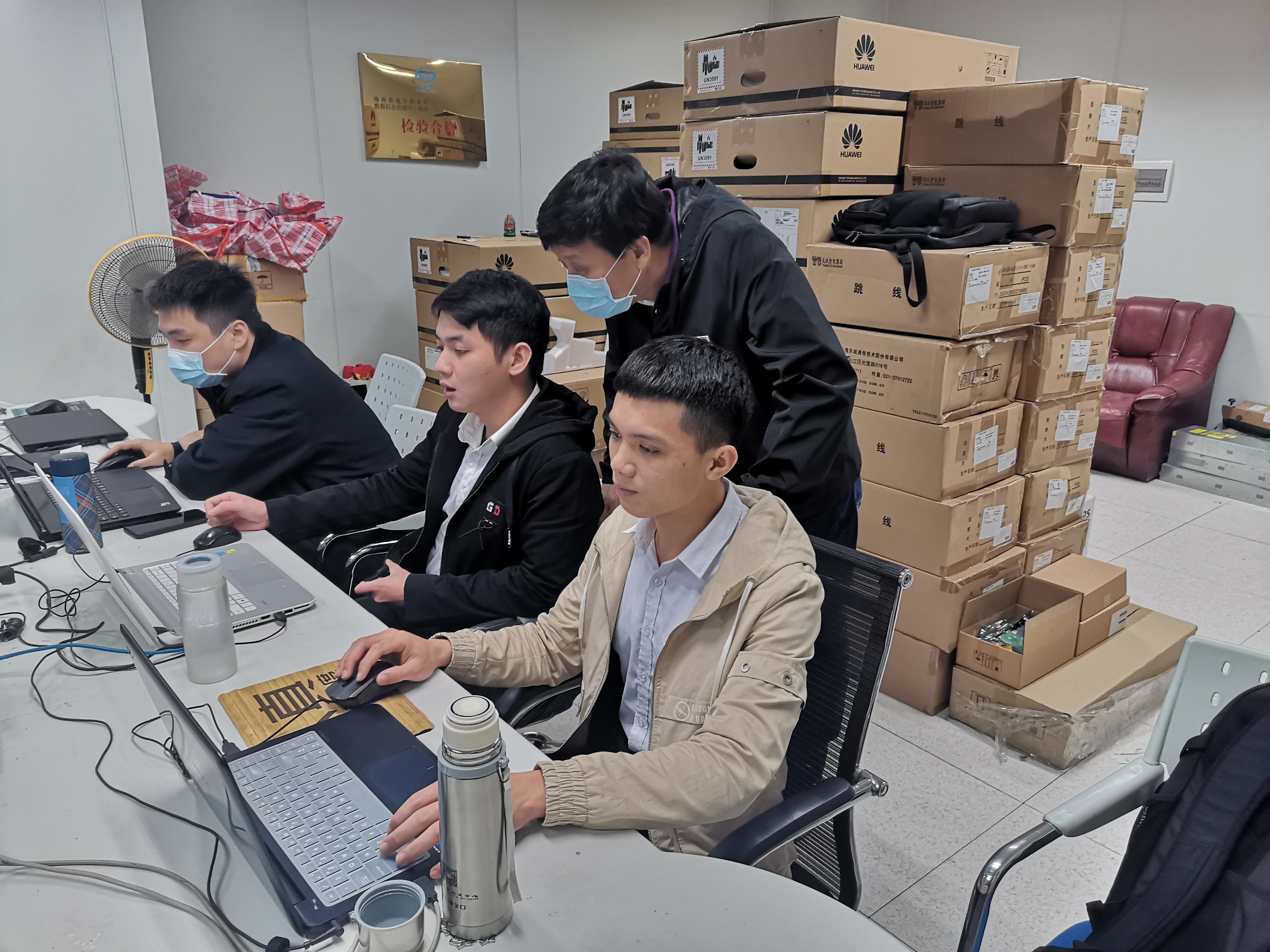第二站走访的企业是海南好思达网络科技有限公司,好思达公司与我校在人才培养、实践课程授课和顶岗实习方面已经展开合作。今年在好思达入职的计算机网络技术专业学生有12名,分布在海口、澄迈、三亚、白沙等地驻点进行网络运维技术服务。在好思达公司单院长与技术主管就接下来的合作模式进行了规划和落实,接下来便前往驻点单位海南省税务局城西办公区,在这里,18网络1班杜进祥和18网络3班的吴吕处两名同学全职办公进行网络运维技术支持,他们表示这里可以边做边学,慢慢积极实战技能和工作经验。