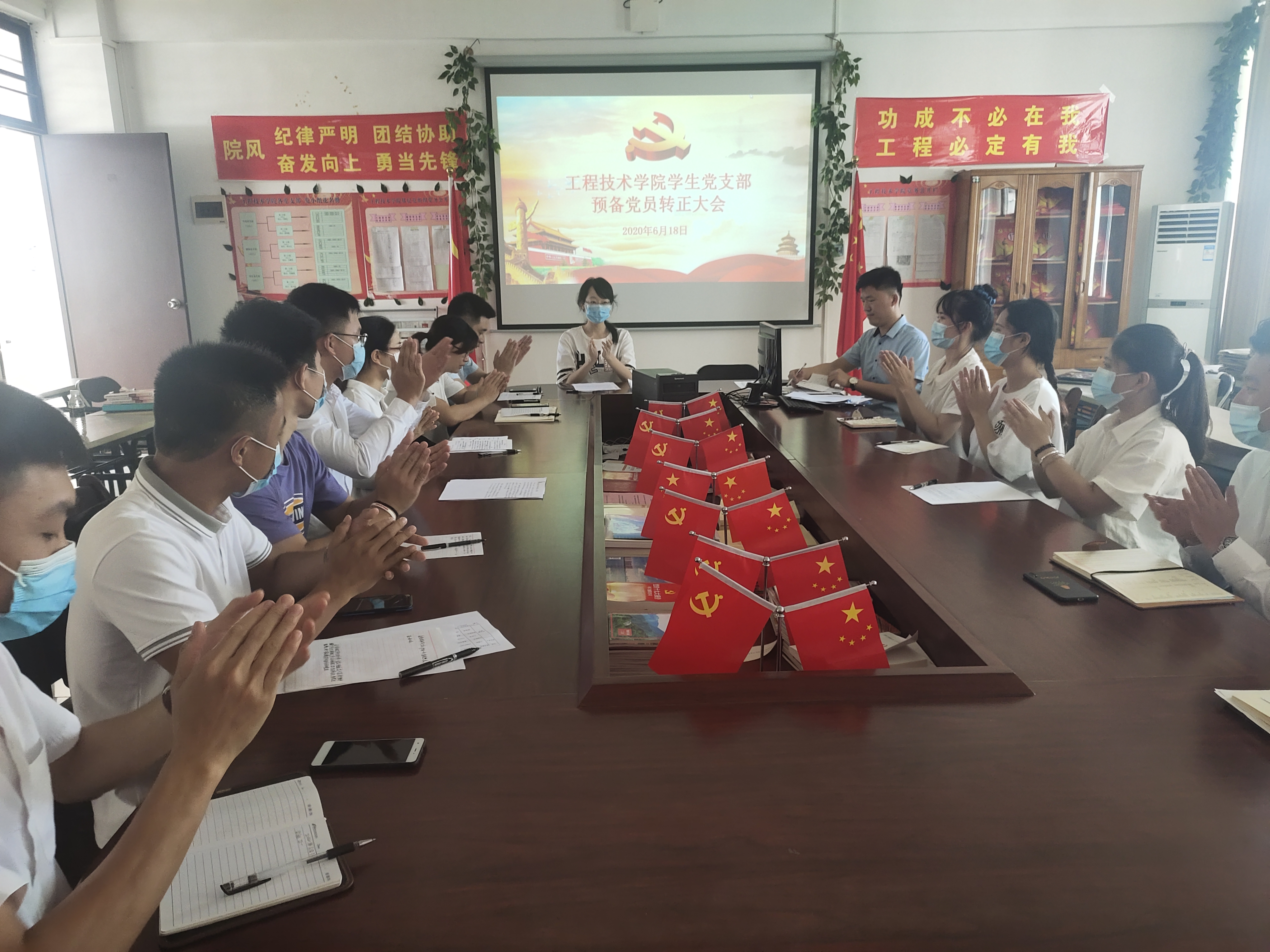 2020年6月18日(院青年媒体中心 符方蕾报道)讯,工程技术学院学生党支部预备党员转正大会于上午10:00在2-406党员之家成功举行,我院党总支副书记陈亚芳老师、学工办主任梁其钰老师、学生党支部书记代晓明老师、团学负责人周恺老师4位正式党员出席本次会议,大会由我院学生党支部书记代晓明老师主持。
