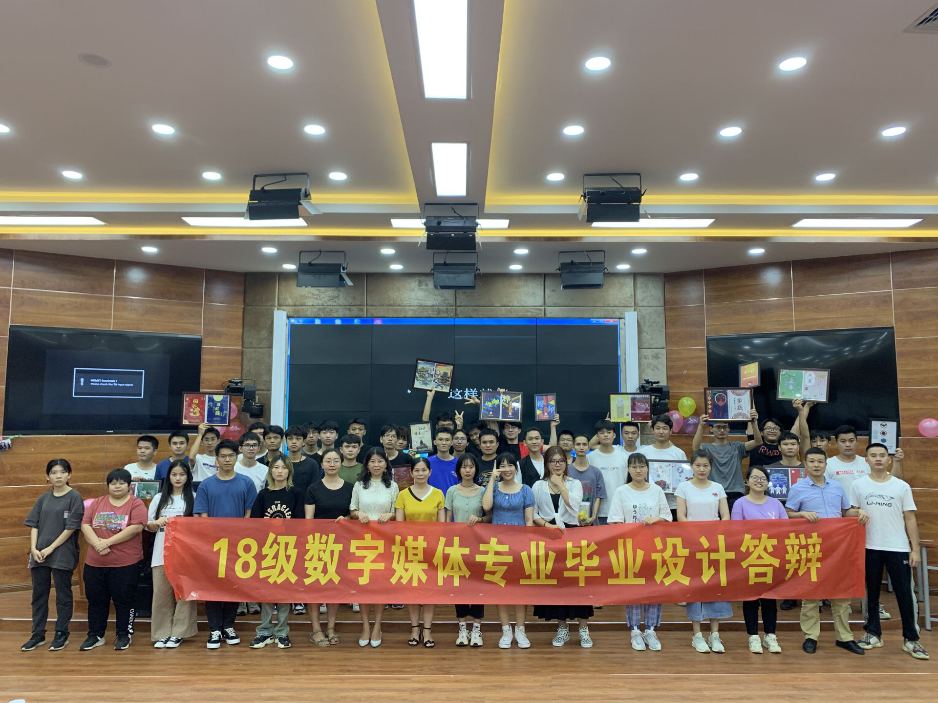 工程技术党总支副书记陈亚芳老师,学工办主任梁其钰,数字媒体专业负责人康东、专业老师王凡帆、董阁、张又文、马清、以及数字媒体往届毕业生郑宏旺学长参与了作品评选,2018级全体同学参赛毕业答辩,2019级数字媒体专业全体同学到场观摩。