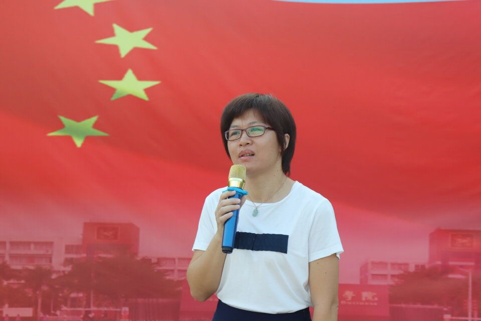 2019年10月14号(院青年媒体中心)讯,10月14号早上7:20分,工程技术学院位于经贸广场举行升旗仪式。出席本次升旗仪式的有:工程技术学院党总支副书记陈亚芳、学工办主任梁其钰、学生党支部书记代晓明、我院全体辅导员老师、我院全体学生。