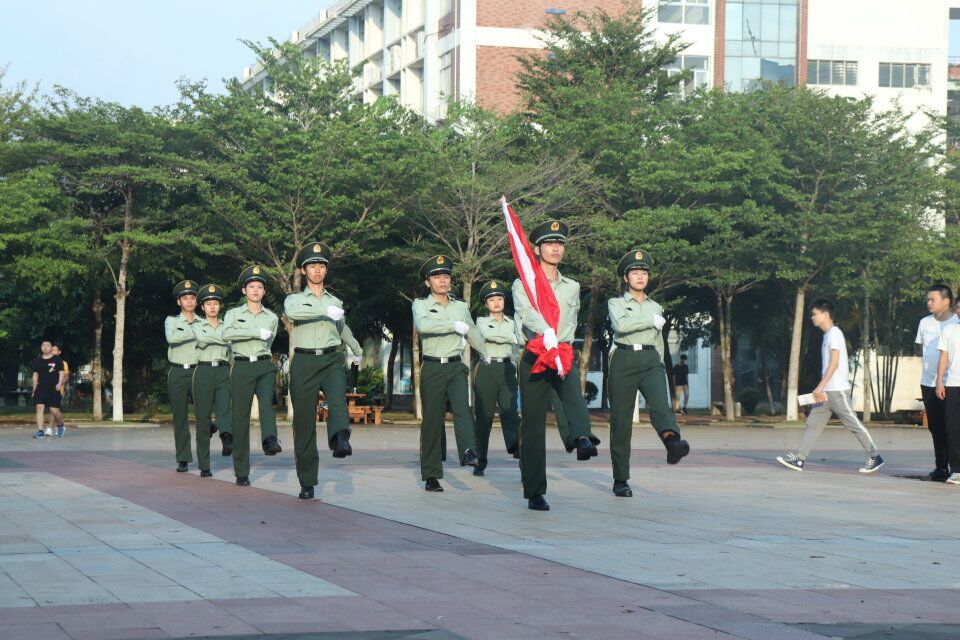 争做海南脊梁”主题开展活动,由我院团学青副书记李家欣主持本次升旗仪式,大会第一项:国旗护卫队出旗;大会第二项:升国旗、奏国歌、行注目礼;大会第三项:国旗下讲话,本次演讲的同学是19级网络一班李秋玉,演讲主题是“培育和实践社会主义核心价值观”,她与大家分享了作为大学生在践行社会主义核心价值观中要着重落实于行动上、应加强自身业务学习、树立服务理念努力实现自我价值、勇于承担社会责任等;陈亚芳老师国旗下的讲话中提出了“加强学生的自我管理”、“牢记校训,学以致用”,倡导我院学生在大学生活中对自己的未来进行科学规划,并祝愿每位同学能够找到自己的人生答案。