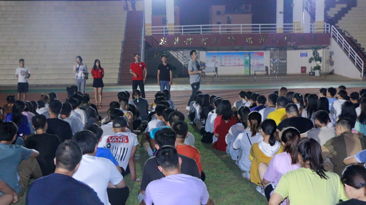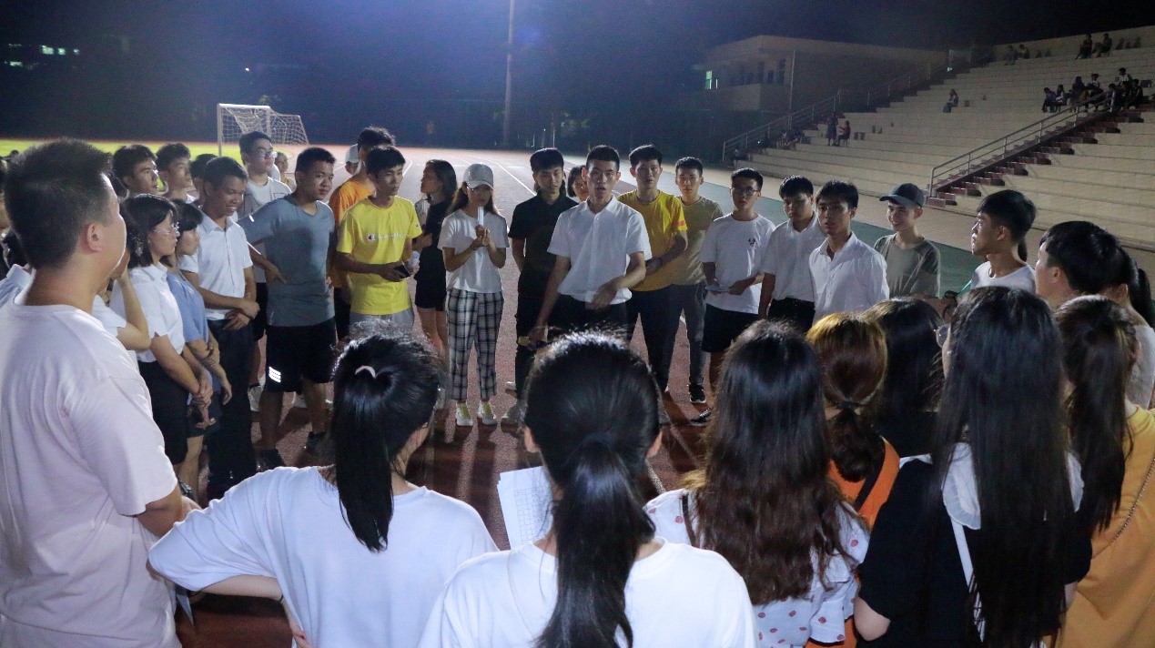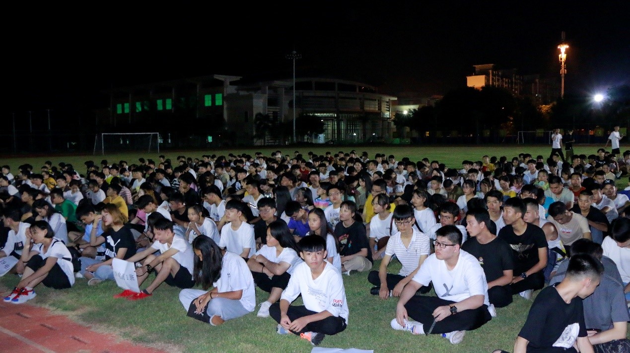 2019年9月15日(青年媒体中心报道)讯,忙碌的两天迎新工作已圆满结束,我院于9月15日晚19点半在田径场组织全体新生进行了第一次新生大会,参与本次大会的有:19级辅导员周恺老师,19级辅导员梁琪钰老师,19级辅导员唐图老师,18级辅导员郭蓉佳老师,18级辅导员代晓明老师,团学青部分成员,以及19级新生班级代班和所有19级新生。