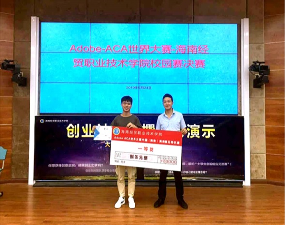 工程技术学院报道:我校与达内科技携手共办的海南贸首届ACA世界大赛校园赛,已于5月24号在2-215完满落幕。达内科技经理郑金超,设计师任宇鹏老师,数字媒体专业负责人康东老师,平面设计张又文老师参加了出席了此次决赛。此次Adobe-ACA大赛共有50多名参赛选手参加,分别来自我院数字媒体专业、电子商务专业学生。通过初选有30名同学晋级,入围决赛。决赛设计难度大大增加,在进行了作品创作、选手答辩环节后,由评判评分,最终决出1等奖1名,2等奖2名,3等奖3名。