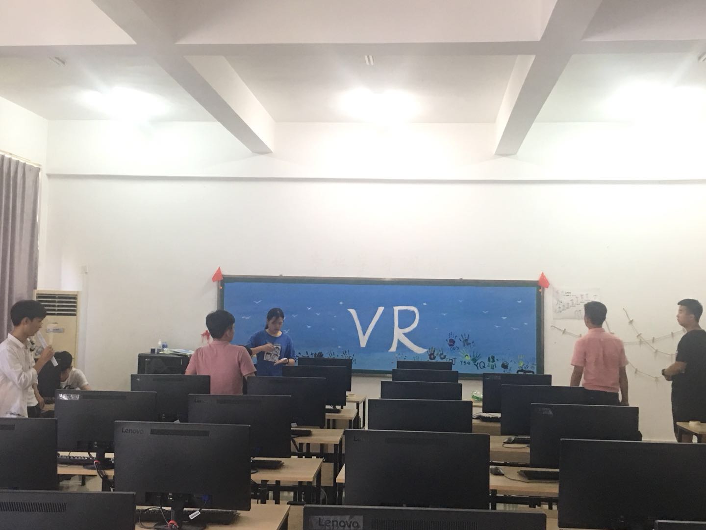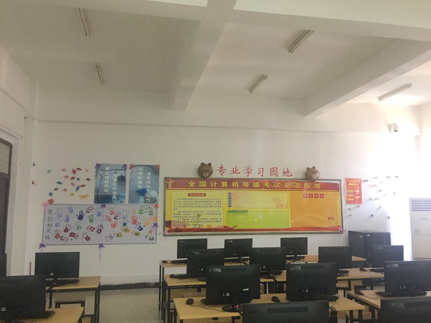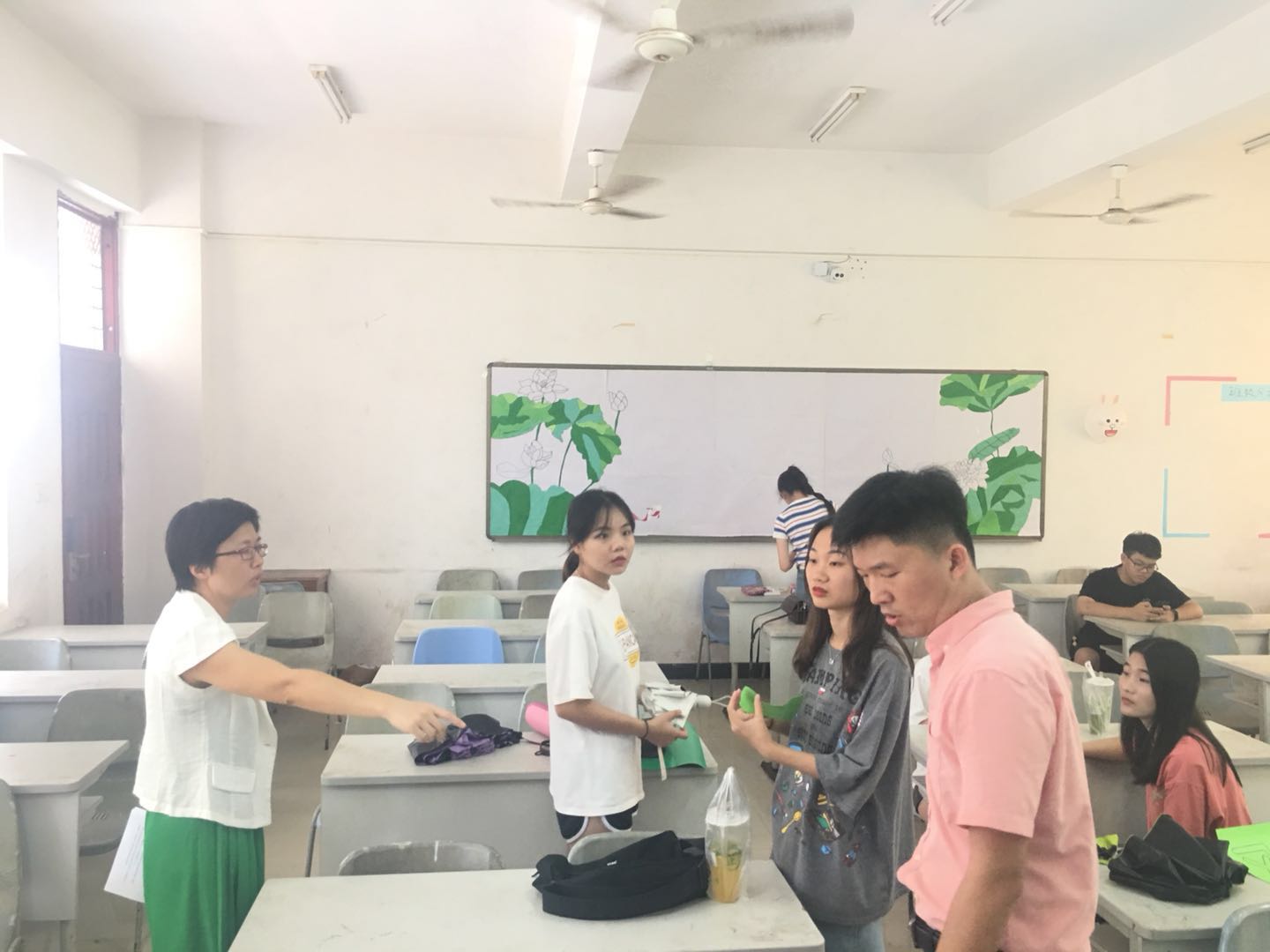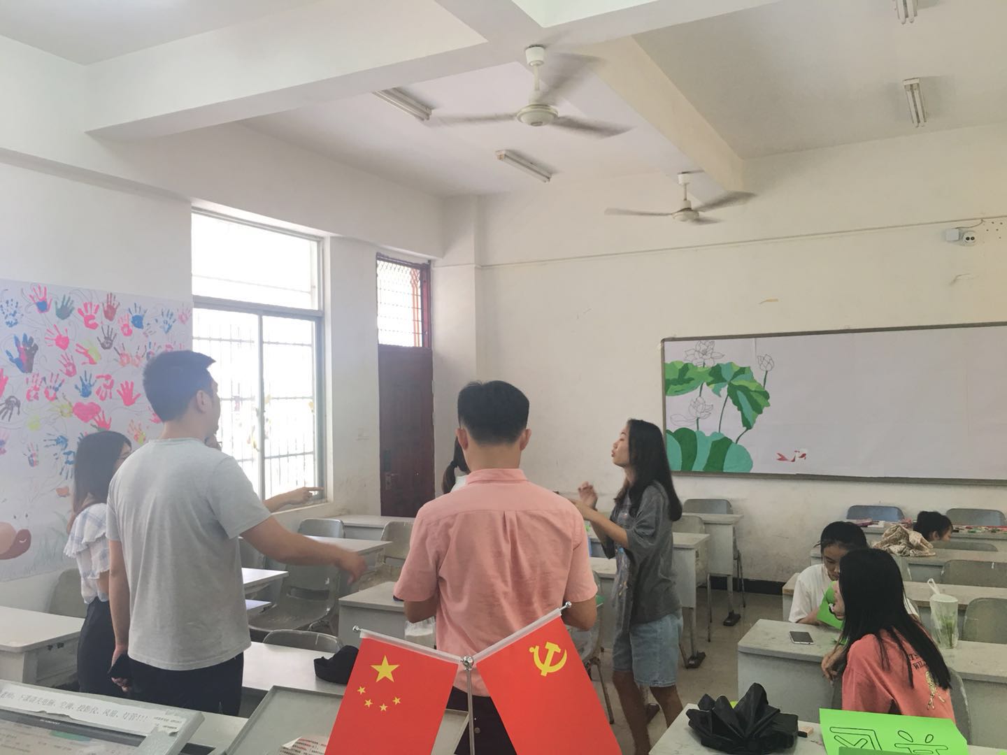 参与本次考察工作的老师进入班级后,班级的负责人带领老师参观了整体班级建设,针对本班的文化及规划做了详细的介绍。五颜六色的彩笔、各式各样的气球、有趣的涂鸦、板报的丰富内容,经过同学们的共同努力,使宽敞明亮的教室瞬间变得生机勃勃,充满了活力。