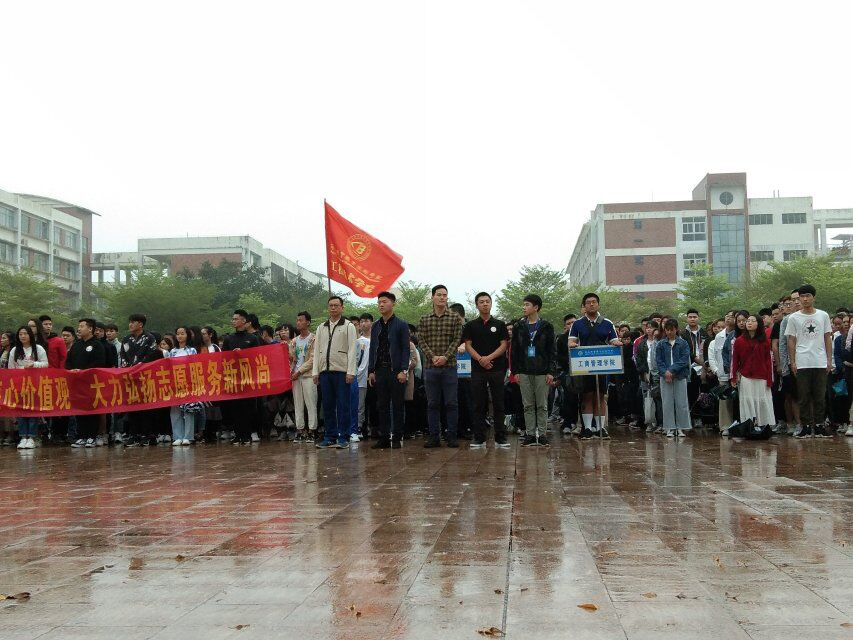随着我校国旗队同学的整齐有序的步伐,国旗在经贸广场徐徐升起。升旗仪式礼毕后,由我校青年志愿者协会会长肖宏富同学上台发言。肖宏富同学以践行社会主义核心价值观,大力弘扬志愿服务新风尚为主题告诉了我们要坚定信念、不忘初心,做新时代雷锋精神的坚定擎旗者;要向上向善、砥砺前行,以新时代雷锋精神的模范践行者为目标。