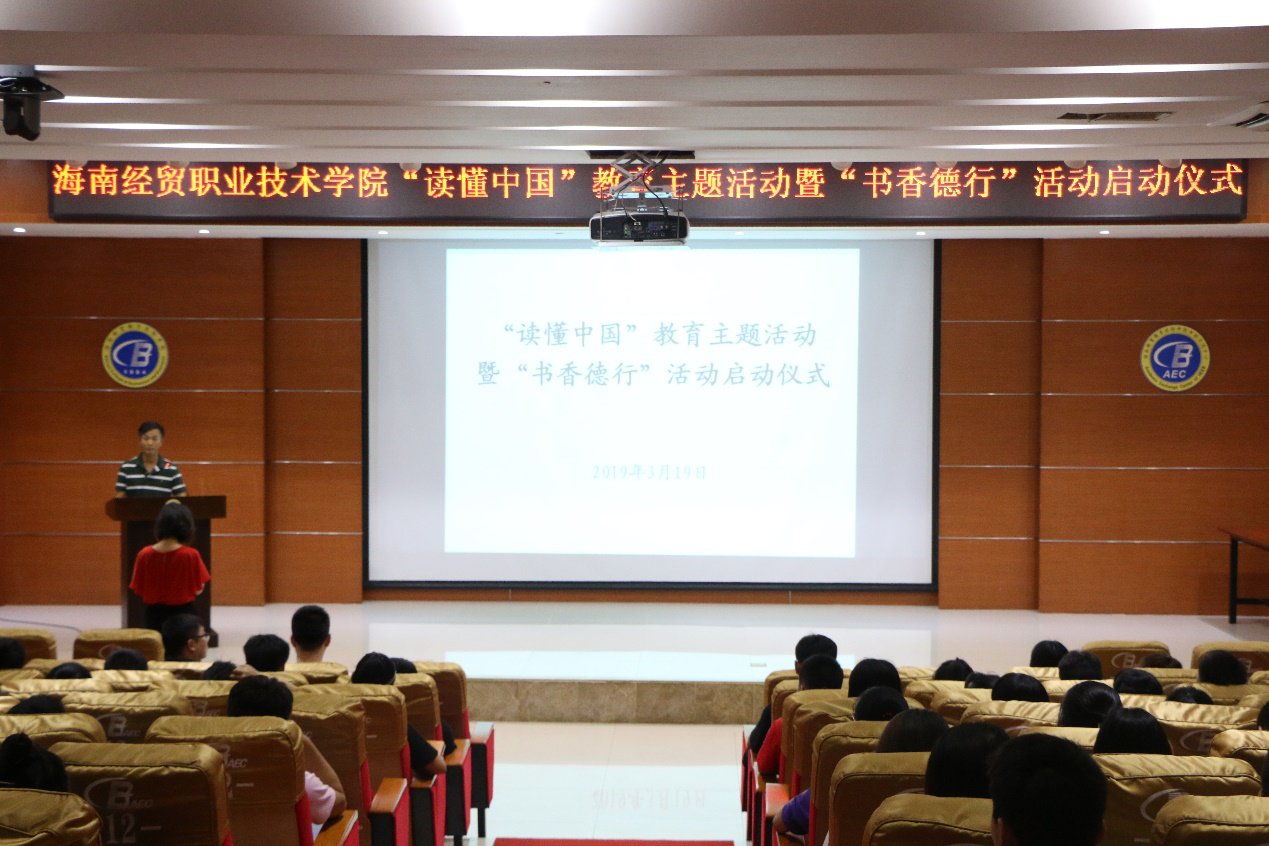 2019年3月19日(青年媒体中心报道 蔡诚杰、张美芳)讯。在我校学术交流中心举办了“读懂中国”教育主题活动暨“书香德行”活动启动仪式。参加本次活动有我院周恺老师、全体团学青成员及其他院师生,由王正华教授主持仪式。