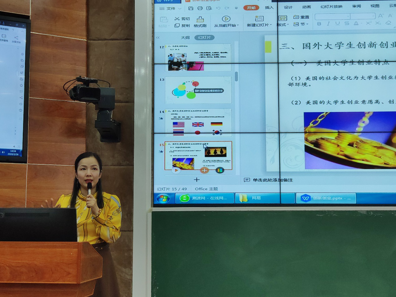 2019年3月26日(青年媒体中心 蔡诚杰)讯,下午2点半,工程技术学院2018级电商专业和网络专业,共计5个班级,约200名学生,在2栋215参加了工程技术学院创新创业专题讲座。本次讲座由特邀专家沙娜导师主讲,赵欣鑫经理主持。