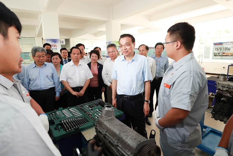 李克强总理3月27日上午考察海南经贸职业技术学院。今年《政府工作报告》提出,要改革完善高职院校考试招生办法,大规模扩招100万人。在这所高职院校,总理关心地询问扩招计划、师资及毕业生就业收入等情况,并与实训车间里进行发动机维修、钣金操作的学生深入交流。李克强勉励同学们说,国家不仅需要高端科研人才,也非常需要高技能人才,希望你们更加注重坚守专业精神、职业精神和工匠精神,努力顶起中国制造的脊梁。