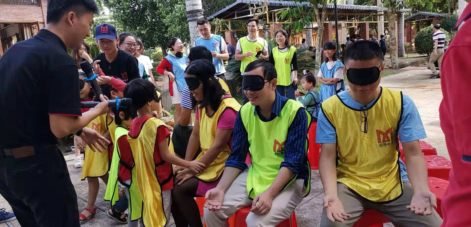 抵达活动地点后,大家自由参观农家乐菜园、果园并进行了采摘,随后所有参加的成员以家庭为单位被分成四个作战小分队,每个小分队自行讨论确定队长、队名、队徽、口号、队歌,并按要求摆出相应的队形,组建好团队后,每个小分队进行了团队展示,展示的队伍齐心协力喊出了口号、合唱了队歌,摆出了别具一格的队形。小组展示结束后,各小分队进行了亲子游戏的比拼,每个亲子游戏都是家长和小孩共同参与,激烈的两人三足接力和为你辅路两个项目将家长和小孩的情绪充分调动起来。随后的环节是考验家长和小孩的默契程度,家长和小孩全部蒙上眼罩,家长围坐一圈,小孩轮流抚摸家长们的手或脸进行辨别找到自己的父母,这一环节小朋友表现都很出色,很快便找到了自己的父母。