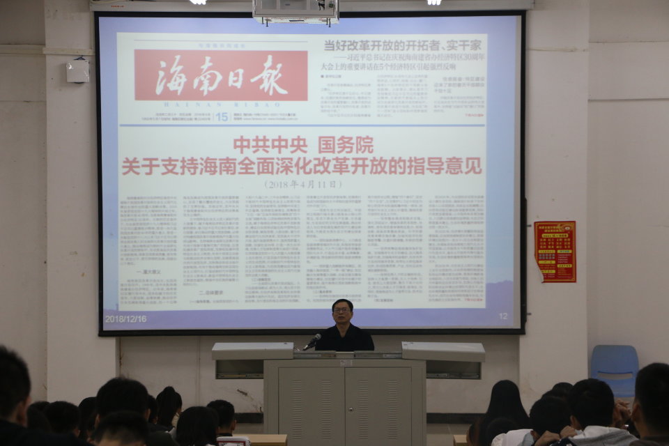2018年12月16日晚(青年媒体中心报道 曾文倩)讯,为加强同学们对建设海南新时代,发展海南自由港意识。我院在二教102、408教室分别展开宣讲,由