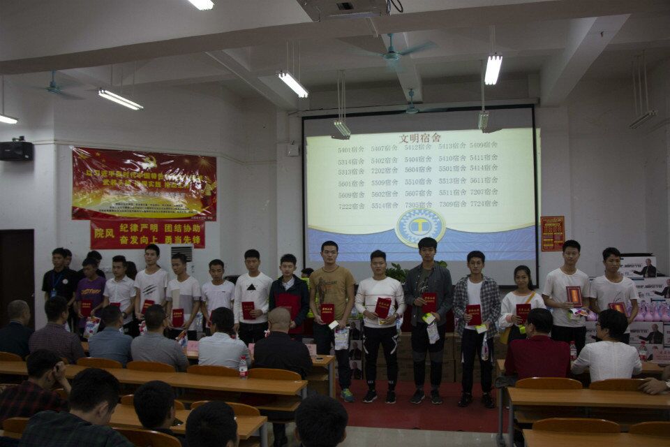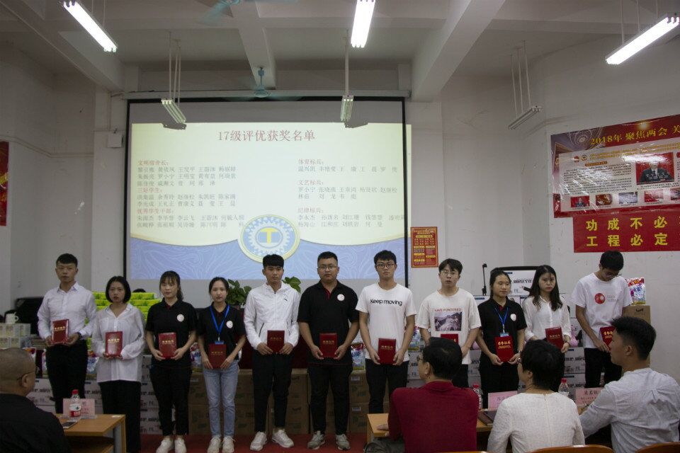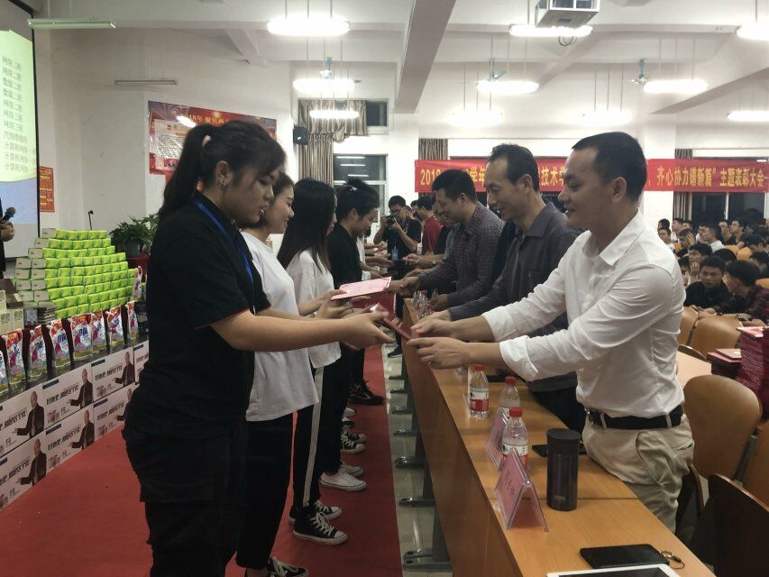 颁奖仪式完毕,工程技术学院党总支陈书记罗列了工程技术学院2018年取得了可喜的成绩。工程技术学院创办了学生服务中心、创办了青年媒体中心、创办了微信公众平台,积极为师生服务;开展了富有特色的“穿红军衣,走红军路”的主题党日活动,开展了“勇当先锋,做好表率”主题演讲活动,开展了“对标争先”劳动竞赛活动,增强了学生“四个自信”和“四个意识”;为积极配合学校各项活动,积极组织学生参加了校运动会、红歌大合唱、礼仪操大赛、心理情景剧、星级宿舍创建、星级办公室创建、宿舍搬迁等工作,培养了全院师生关心学校发展的大局意识;举办了入党积极分子培训班,举办了团学青干部培训班,举办了各班班长、班干素质拓展培训班,增强了学生团队合作意识。工程技术学院学生学习生活管理过程中形成了一种“纪律严明,团结协助,奋发向上,勇当先锋”的工作精神和凝聚力。