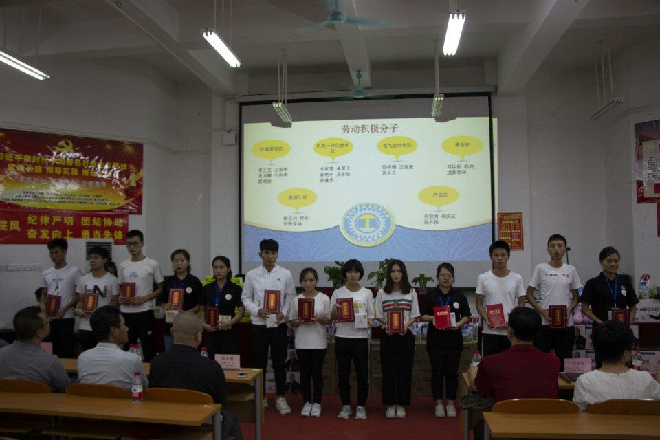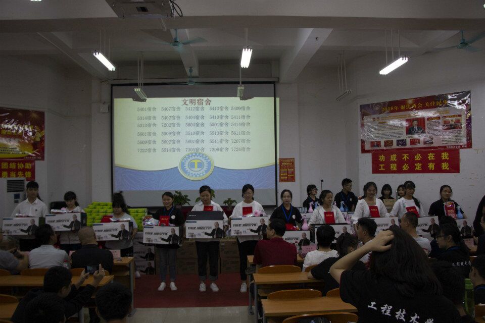 表彰会上工程技术学院主要对2018年一年来“三好学生”、“优秀班干部”、“纪律标兵”、“体育标兵”、“文艺标兵”、“优秀宿舍长”、“军训标兵”、“军训期间优秀宿舍长”、“新生奖学金”、“学院奖学金”、“优秀班主任助理”、“优秀学生干部”、“优秀干事”、第二届劳动竞赛中获得第一名、第二名、第三名、“劳动积极分子”、“文明宿舍”“运动员积极分子”等17个奖项分17个批次获奖学生上台领奖,共有150多名同学获得了表彰,会上,还对工程技术学院新产生的“第四届团学青干部”颁发了聘书。