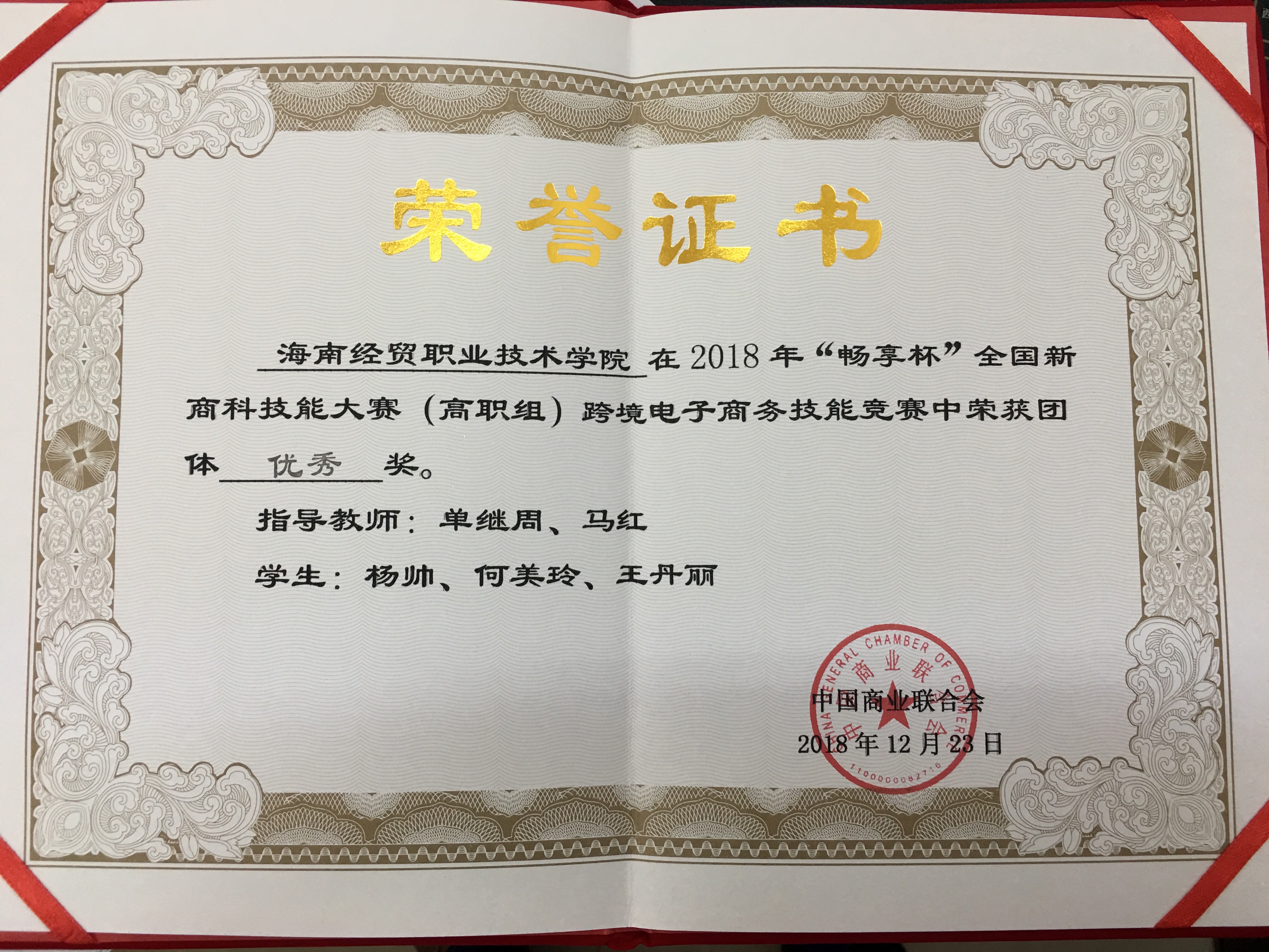 喜讯:工程技术学院代表队在2018年“畅享杯”全国新商科技能大赛(高职组)跨境电子商务技能竞赛全国总决赛中荣获团体优秀奖