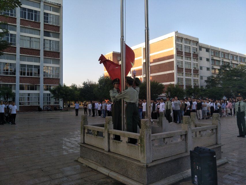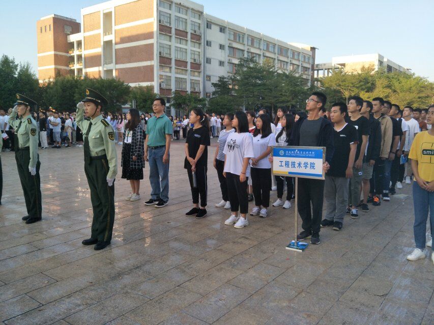 10月29日清晨我校工程技术学院在海经贸广场隆重举行升旗仪式。参加本次升旗仪式的有陈继敏书记、大一大二辅导员、梁其钰老师、唐图老师。