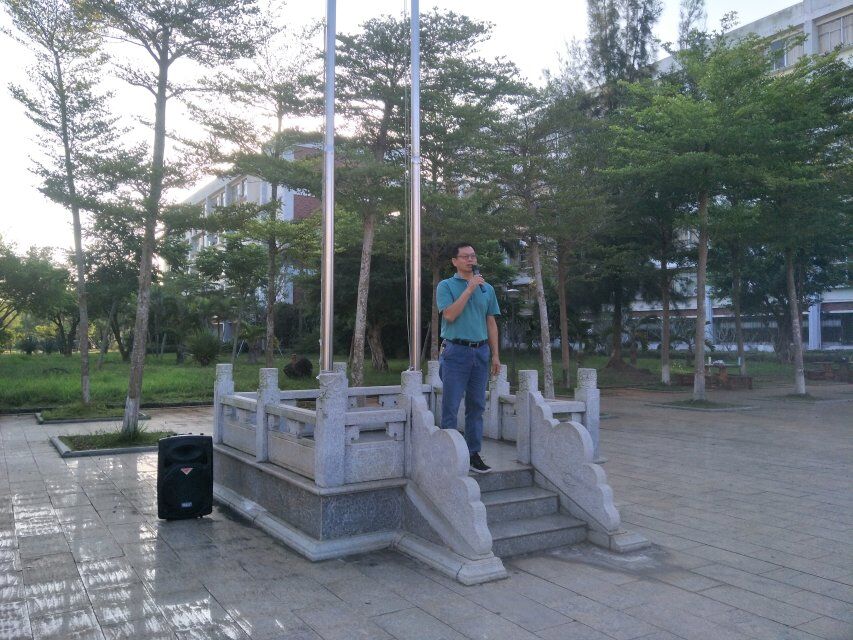 升旗仪式礼毕,陈继敏书记代表所有工程学院老师发言。他谈到了学院的发展以及对我们学生今后的学习方法提出了意见,并鼓励学生们努力奋斗!祖国的繁荣昌盛与学生的成长成才紧密相联,少年强则国强!学生努力奋斗是实现中华民族伟大复兴的重要力量,我们全体学生应继续发扬老一辈英雄们的长征精神,学习红军不怕远征难,万水千山只等闲的气概。陈继敏老师对我们寄予厚望,期待我院学子能在学校中不断成长,克服困难,在校训能够取得更好的成绩,为校争光!