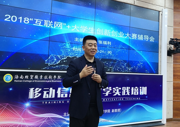 本校4月17日讯(工程技术学院报道)4月16日晚,大连科技学院校长、创新创业学院院长张福利应邀来到海南经贸职业技术学院工程技术学院,为学校2018年“互联网+”创新创业大赛作专题辅导。