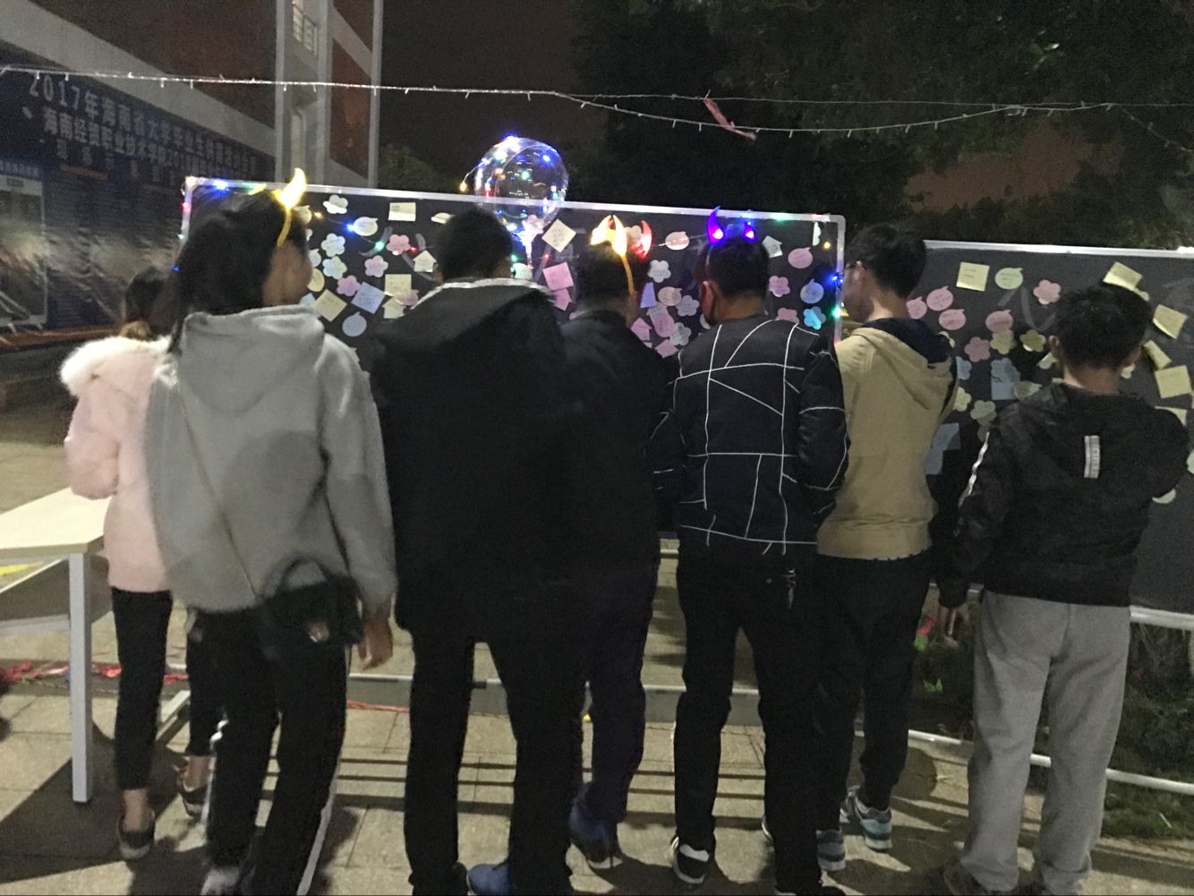 同学们围观心愿墙
