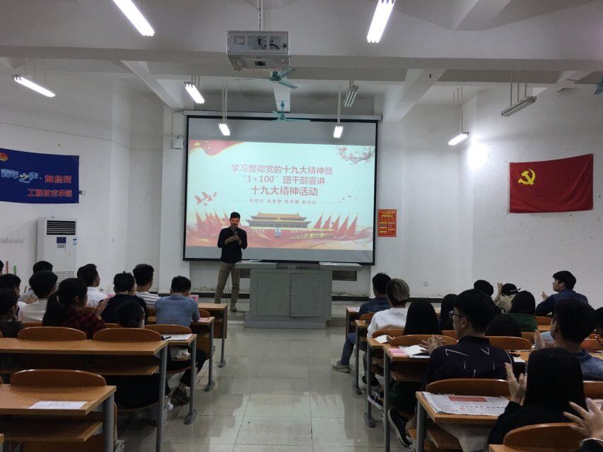 首先由团总支副书记符东平发言,他强调了十九大的四个“新”,即新时代、新思想、新矛盾、新目标。会议期间由17级团支书代表李云飞、尚卓、蔡奕明依次为我们宣讲十九大内容。最后由团学负责人唐图老师为大家做总结,总结包括以下几点:一是新时代要有新使命、新担当、新作为;二是青年兴则国家兴,青年强则国家强;三是青年一代有理想、有本领、有担当,国家就有前途,民族就有希望。