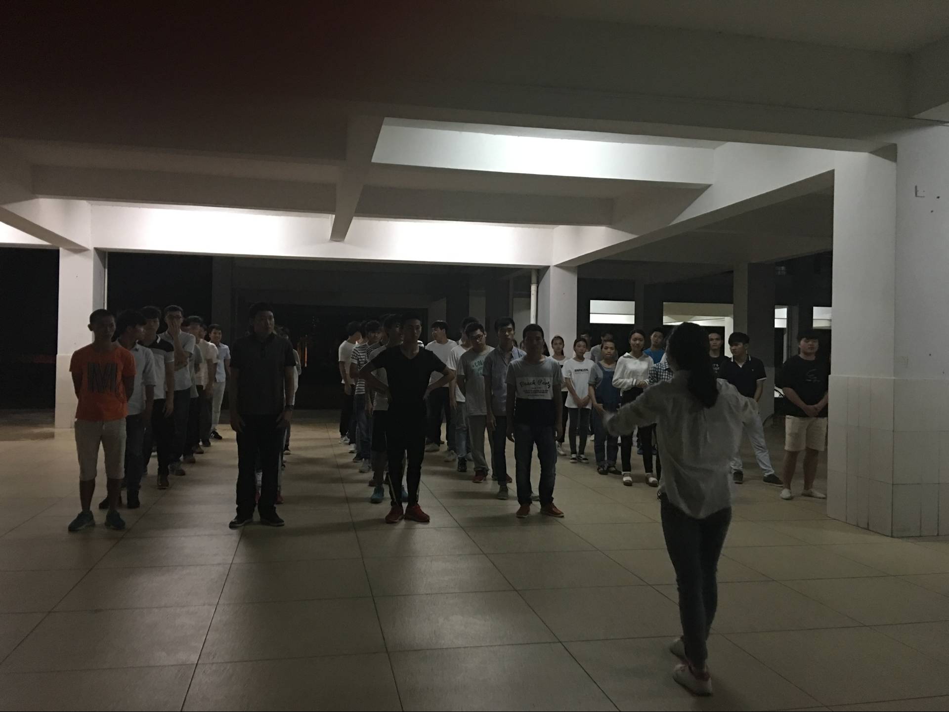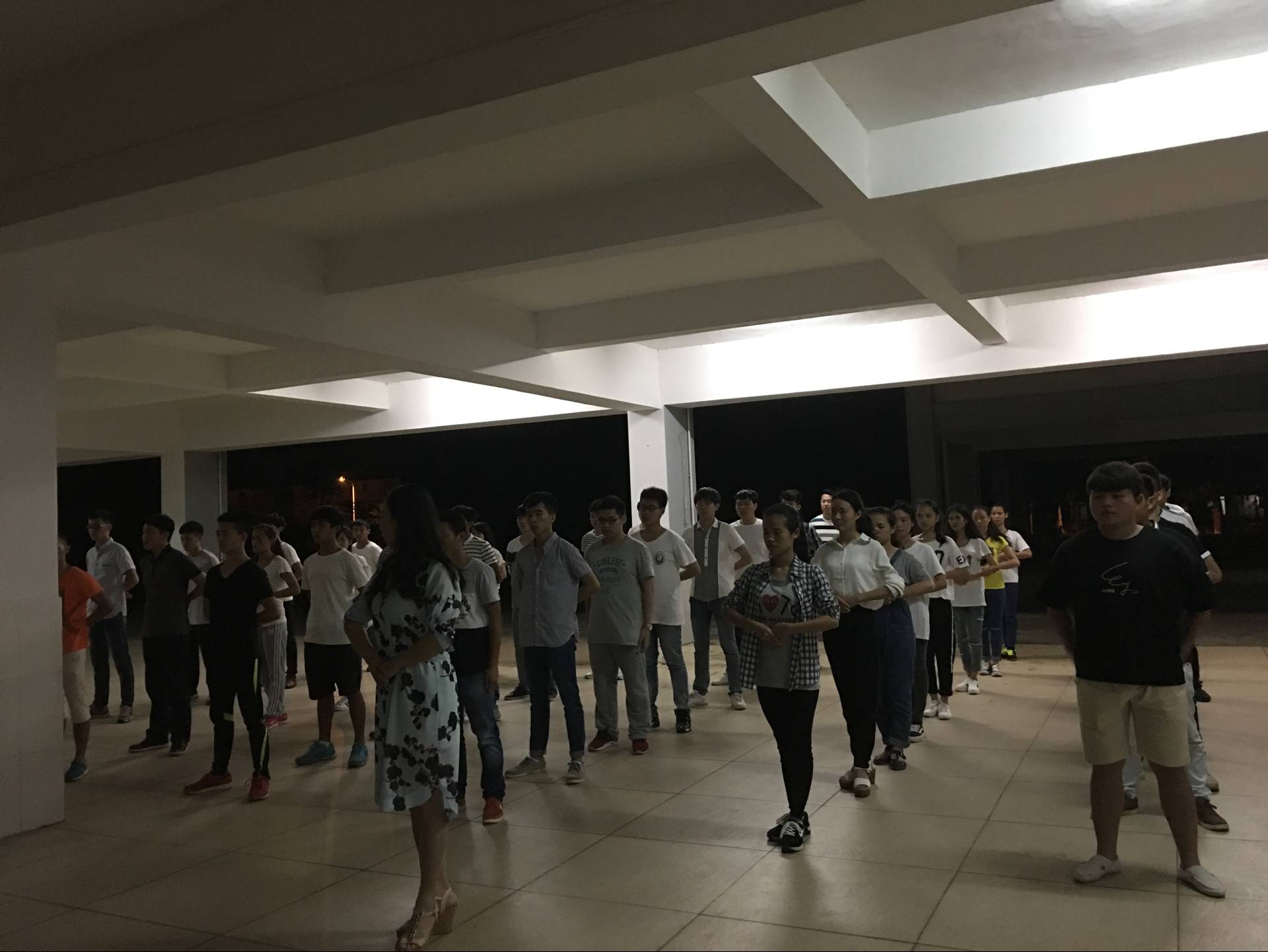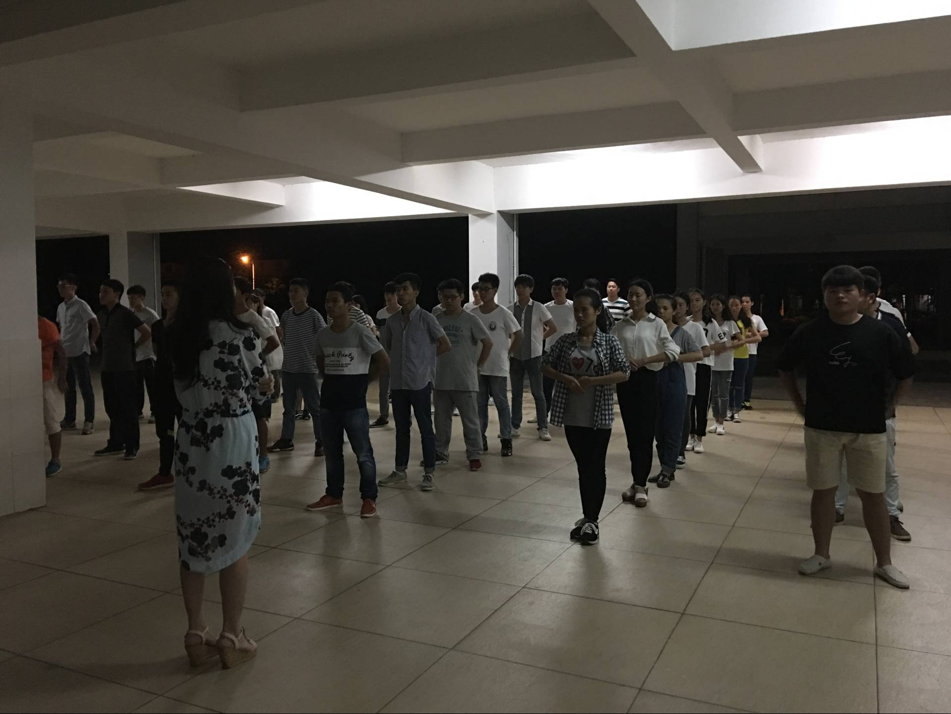 4月20日讯(工程技术学院 李京京报道)为了即将到来的学校礼仪操大赛,我院学生积极配合学姐的安排,于4月19日晚7:10分在二栋楼下进行礼仪操训练,主要是关于队形的演练。