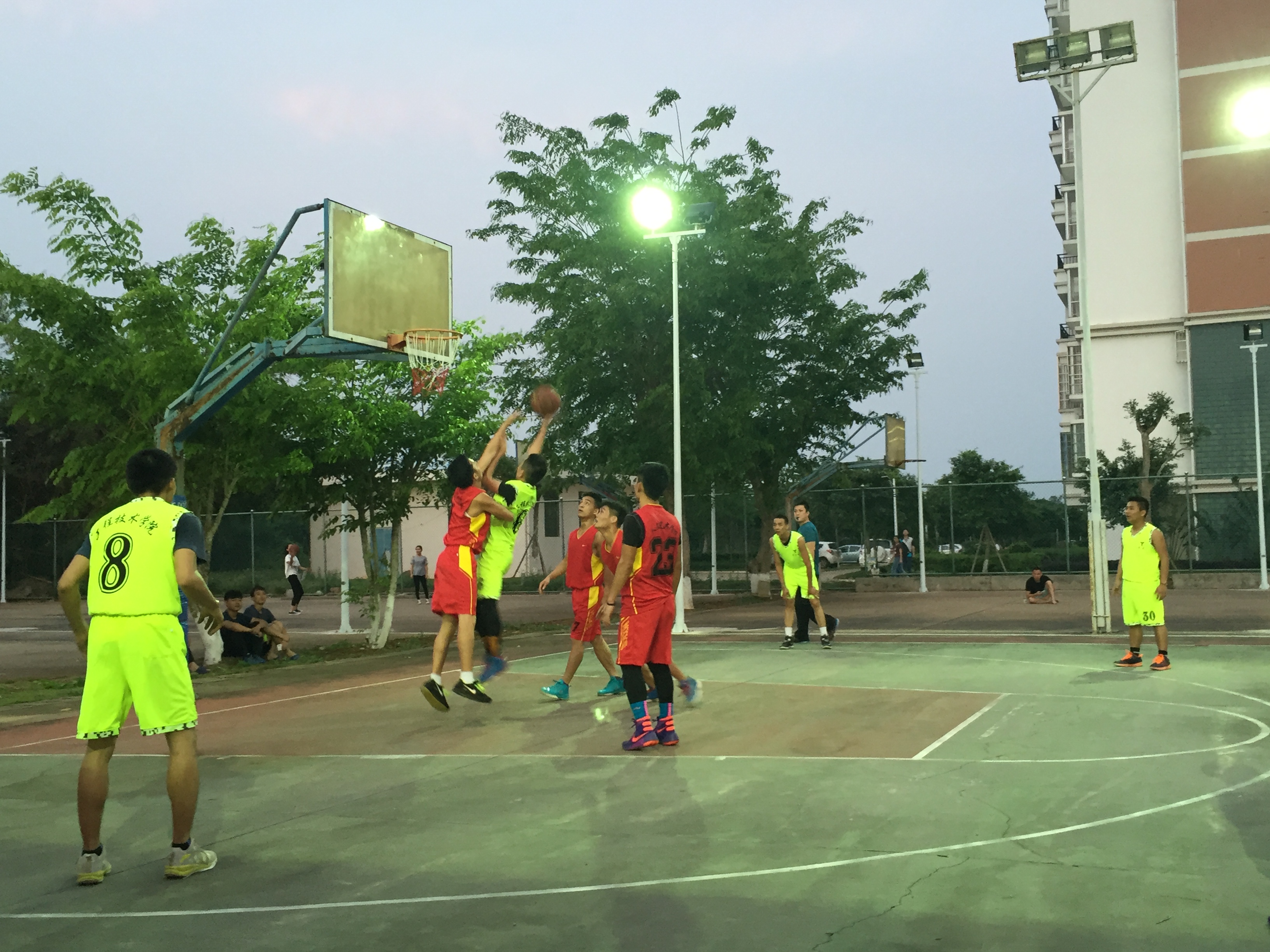 哨声一响起,双方队员握手后,比赛正式开始,在赛场上队员们积极投入、全力以赴。那青春的身影用灵巧与速度、敏捷与迅猛、沉稳的步伐尽情演绎着篮球赛的速度与激。情场下的工程的拉拉队为他们呐喊助威!经过紧张激烈的角逐,我院男女队比赛得分都不及人文艺术学院。