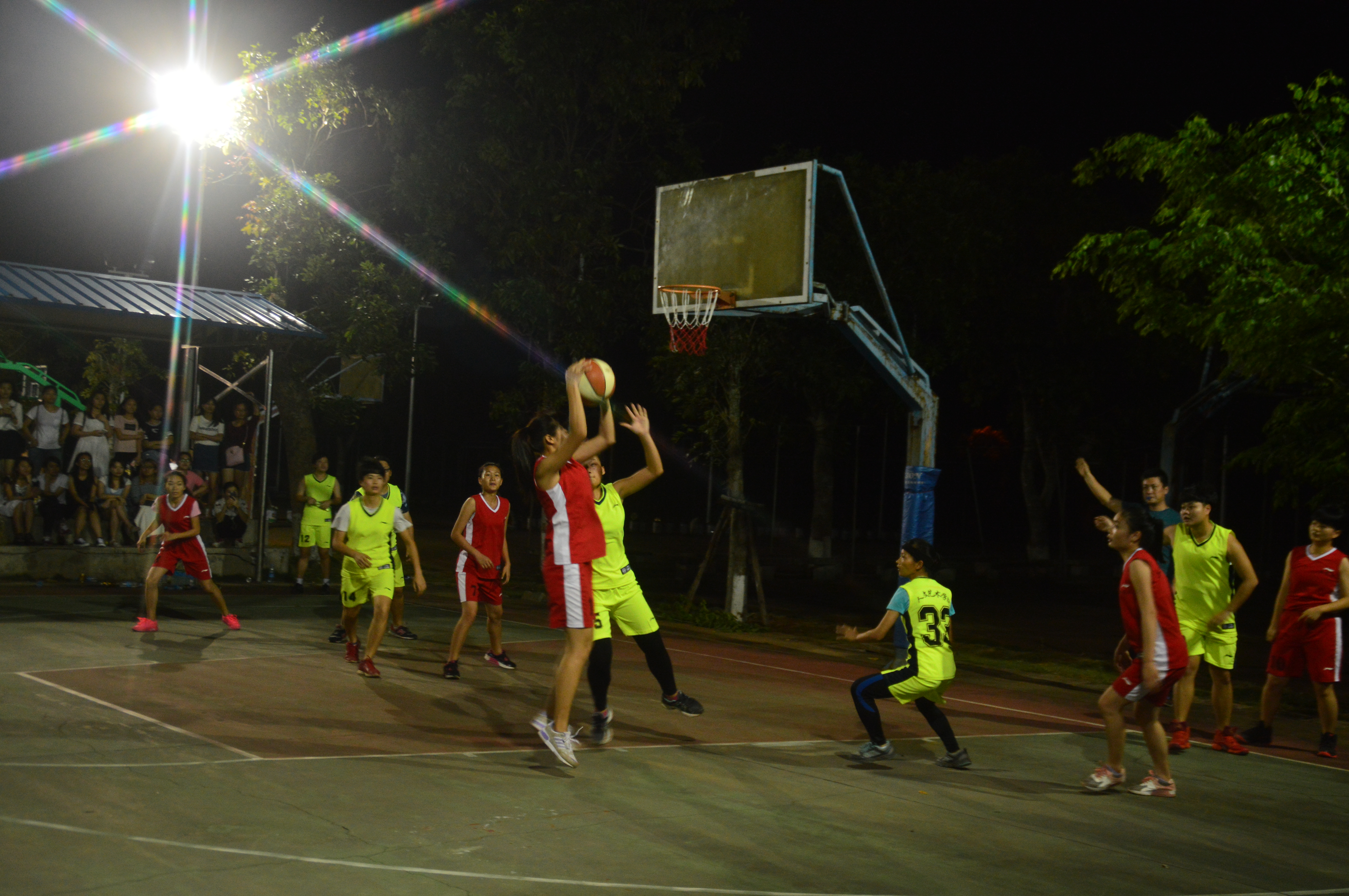 4月21日讯(工程技术学院 李京京报道)4月20日下午6时在篮球场展开了“青春篮球,魅力无限”海南经贸职业技术学院第七届大学篮球赛亚军的争夺赛,男队vs人文艺术学院,女队vs人文艺术学院,下午5时50分观众和和队员已经相继到达,团总支书记梁其钰老师、陈亚芳老师到达现场观战给工程加油助威!